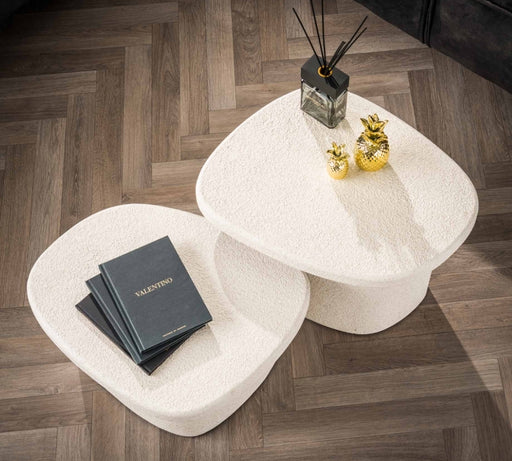 Naast individuele organisch gevormde salontafels, hebben we ook sets van twee beschikbaar. Hiermee kun je de samenhang in je interieur versterken, terwijl je tegelijkertijd voldoende ruimte hebt voor je drankjes en snacks. Ontdek de diversiteit van onze organische salontafelcollectie en voeg een gestructureerd element toe aan je woonruimte.