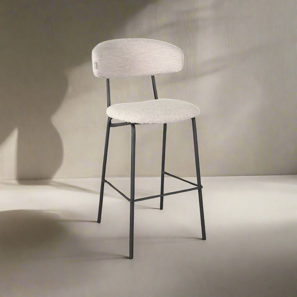 Barkruk Zach in Naturel Boucle van het merk LABEL51 is verkrijgbaar in 4 kleuren en is enorm comfortabel door de extra vulling in de rugleuning en de zitting. De stof bouclé geeft een zachte, aangename zitervaring en voegt een vleugje luxe toe aan je interieur.