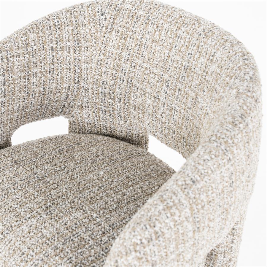 Voeg een eigentijdse en stijlvolle touch toe aan je eetkamer met de Eleonora eetkamerstoel. Deze stoel combineert comfort met een modern ontwerp, perfect voor zowel industriële als moderne interieurs. De zachte zitting is bekleed met hoogwaardig textiel, waardoor deze stoel niet alleen comfortabel is, maar ook een elegante uitstraling heeft. Het strakke metalen onderstel biedt een stevige en duurzame basis. Deze gestoffeerde eetkamerstoel is ideaal voor lange diners en past perfect bij elke eettafel.