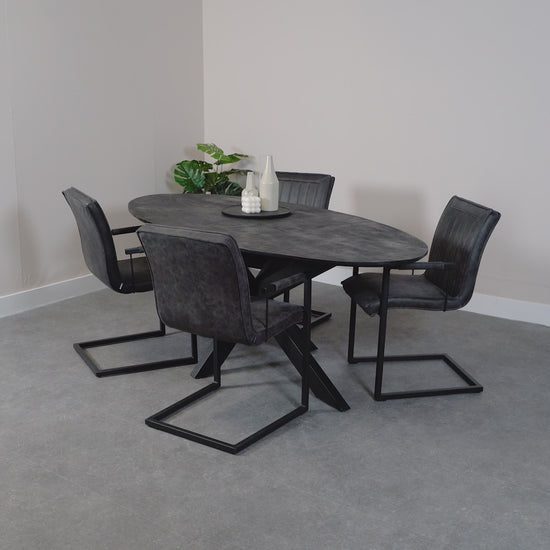 De matrixpoot die onder de zwarte ovale eettafel zit heeft vele voordelen. Doordat de poot onder het blad in het midden van de tafel zit, kun je rondom de hele tafel gemakkelijk zitten. Zo geniet je van lekker lang tafelen in een groot gezelschap. De zwarte kleur van de ovale eettafel zorgt voor een chique en luxueuze uitstraling.