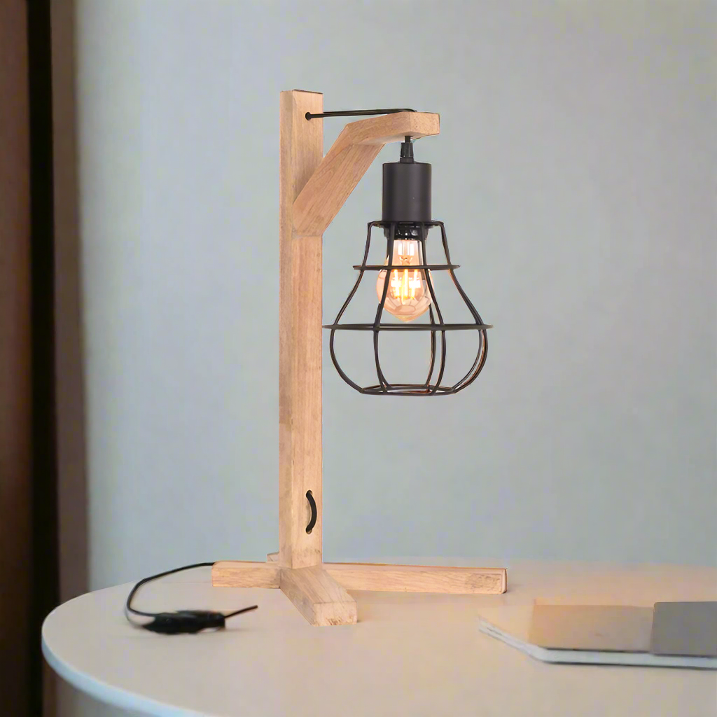 De Tafellamp Drop in zwart mangohout is een unieke combinatie van natuurlijke materialen en industrieel design. Het stijlvolle ontwerp met een warme houten basis en een metalen frame maakt deze lamp perfect voor zowel moderne als klassieke interieurs. Ideaal voor een bureau, nachtkastje of bijzettafel, biedt de Tafellamp Drop sfeervolle verlichting met een decoratief accent.