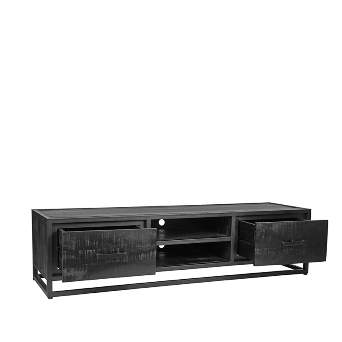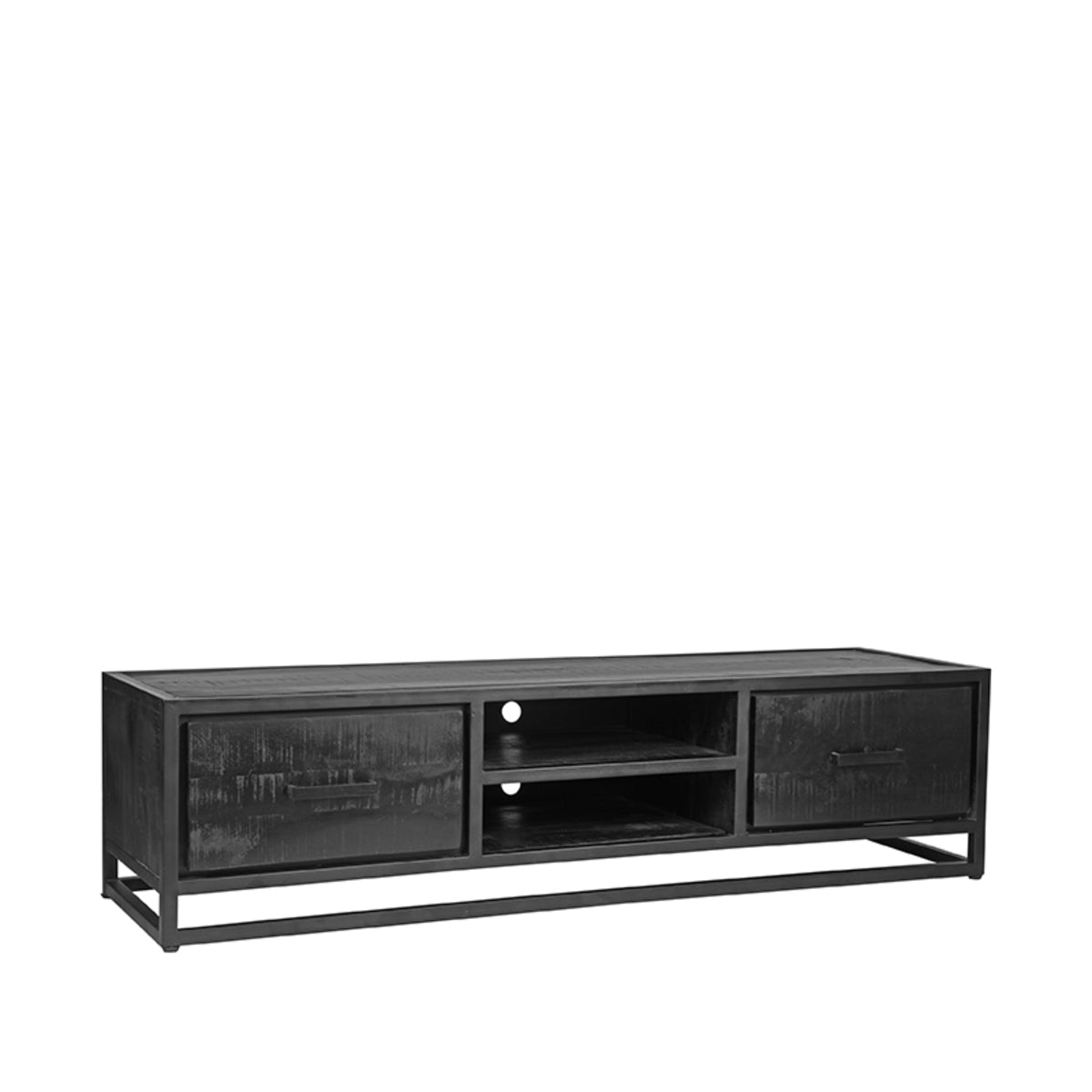 Het tv-meubel Chili combineert stijl en functionaliteit in een modern jasje. Dit meubel is gemaakt van stevig zwart mangohout en heeft een strak metalen frame, waardoor het perfect past in een industrieel of eigentijds interieur. Verkrijgbaar in twee maten, biedt het meubel veelzijdige opbergruimte voor je elektronica en accessoires.