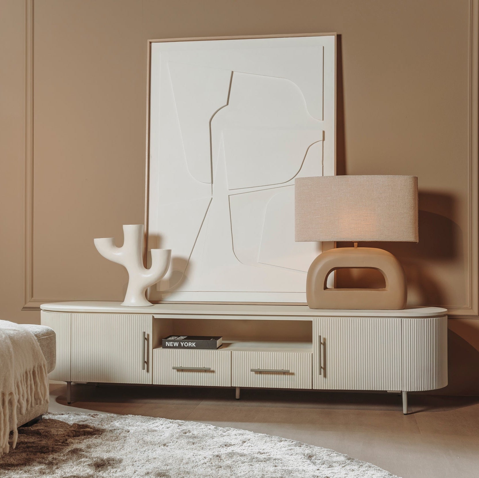 Dit witte TV-Meubel is niet alleen een toevoeging aan je interieur, maar ook aan de sfeer van de ruimte. Combineer het met onze andere meubels voor een samenhangende look.
