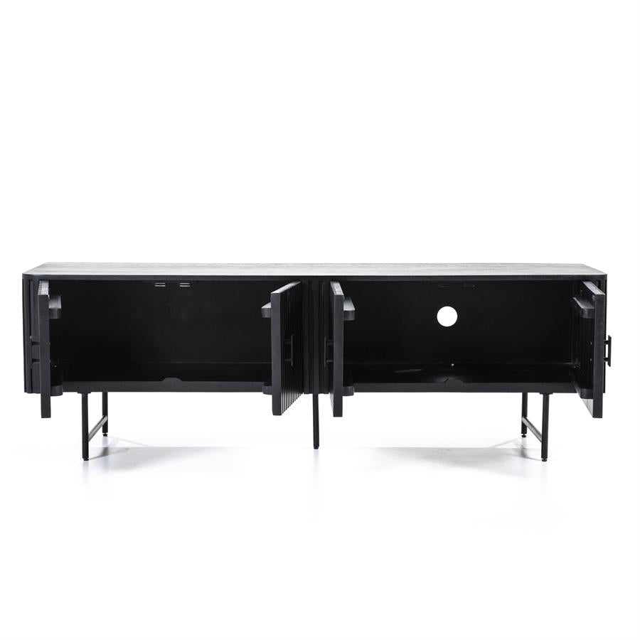 Dit tv-meubel brengt een unieke combinatie van natuurlijk hout en moderne afwerking in je interieur. De stoere uitstraling van het zwarte mangohout voegt karakter toe aan elke ruimte en past perfect bij een industriële of moderne woonstijl.