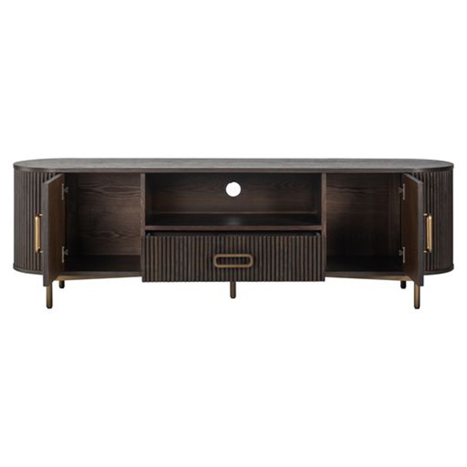 De Tv-meubel Luxor is een uniek en industrieel meubelstuk dat is vervaardigd uit eikenhout en is afgewerkt in een warme bruine kleur. Het meubel combineert de robuustheid van industriële materialen met de warmte van natuurlijke houtsoorten, waardoor het een opvallende aanvulling is op elke woonkamer. Het biedt niet alleen een stijlvolle plek voor uw televisie, maar ook voldoende opbergruimte voor uw audio- en videocomponenten en andere items. Het Tv-meubel Luxor is een must-have voor iedereen die op zoek is naar een uniek en industrieel meubelstuk voor in de woonkamer.