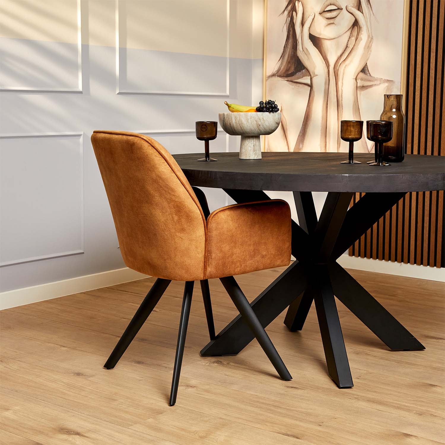 De trendy eetkamerstoel Nova is een echte must-have voor jouw moderne interieur! De comfortabele velvet eetkamerstoel heeft de fijne kuipstoel vorm; praktisch én erg comfortabel. Kom maar op met dat lekkere diner aan de keukentafel! Lang tafelen is geen straf in de zachte eetkamerstoel Nova.