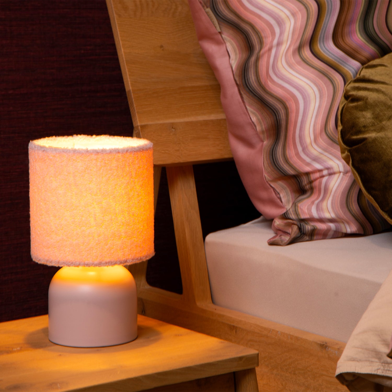 Maak kennis met de Woolly Tafellamp in Roze. Deze unieke lamp beschikt over een lampenkap van 16 x 16 x 15,5 centimeter, gemaakt van hoogwaardig katoen met een wolharige look. De statige voet heeft een diameter van 16 centimeter, wat zorgt voor een perfect uitgebalanceerd design met een totale hoogte van 28 centimeter. Met zijn speelse uitstraling brengt Woolly een gezellige en warme sfeer in elke ruimte.
