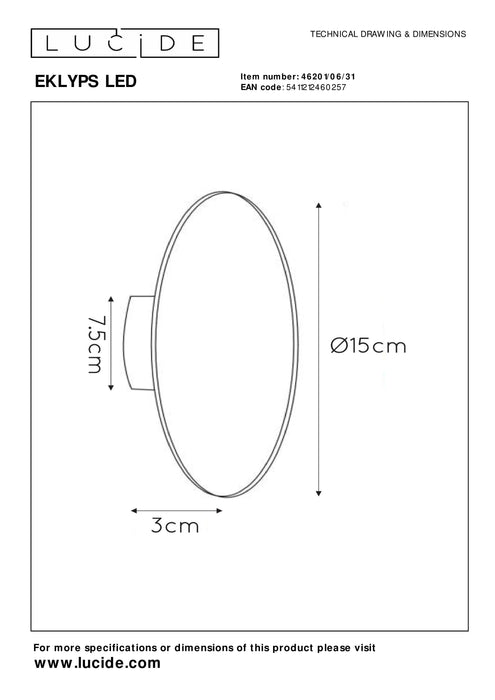 Wandlamp Eklyps LED | Ø 15 cm | 6W | Wit