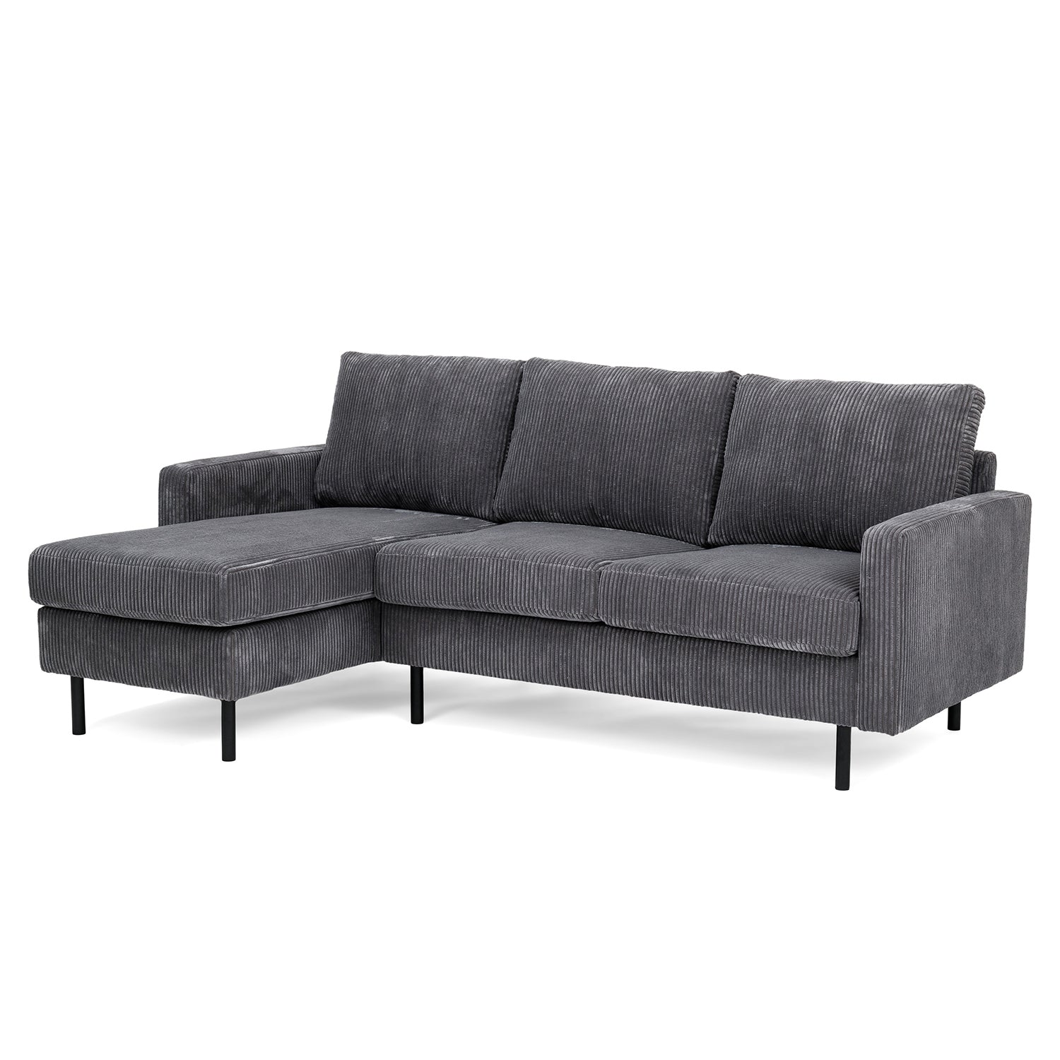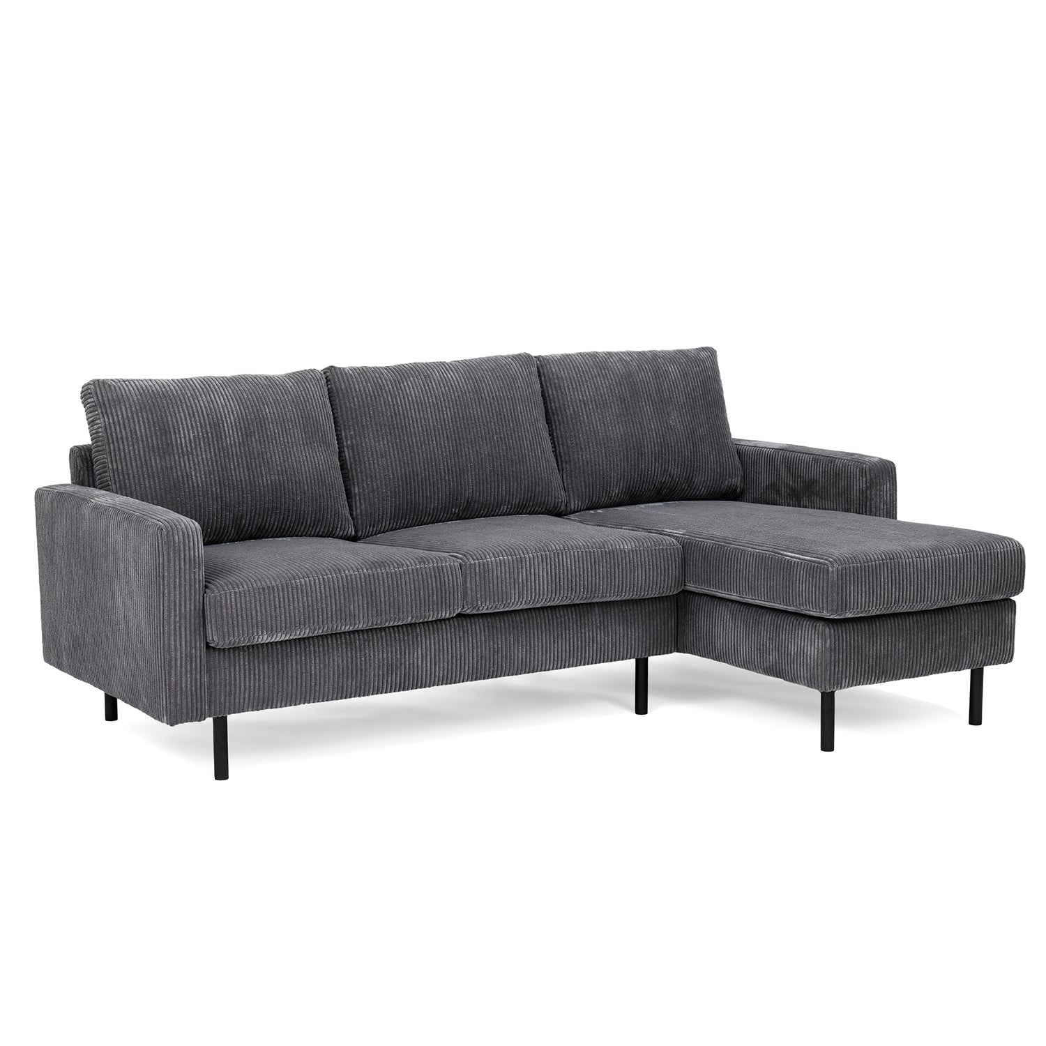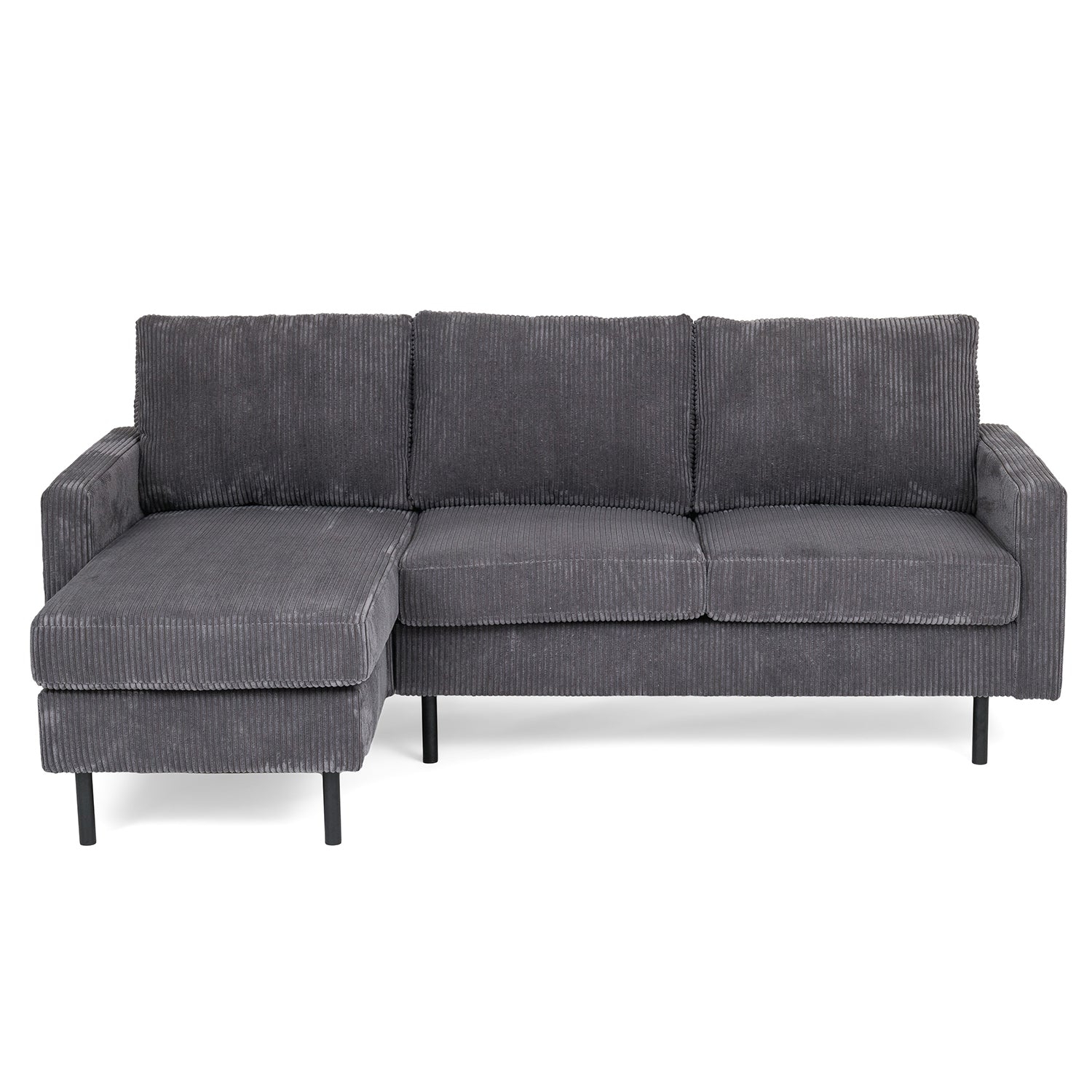 Hoekbank Auckland | Grijs Ribcord | Longchair L+R