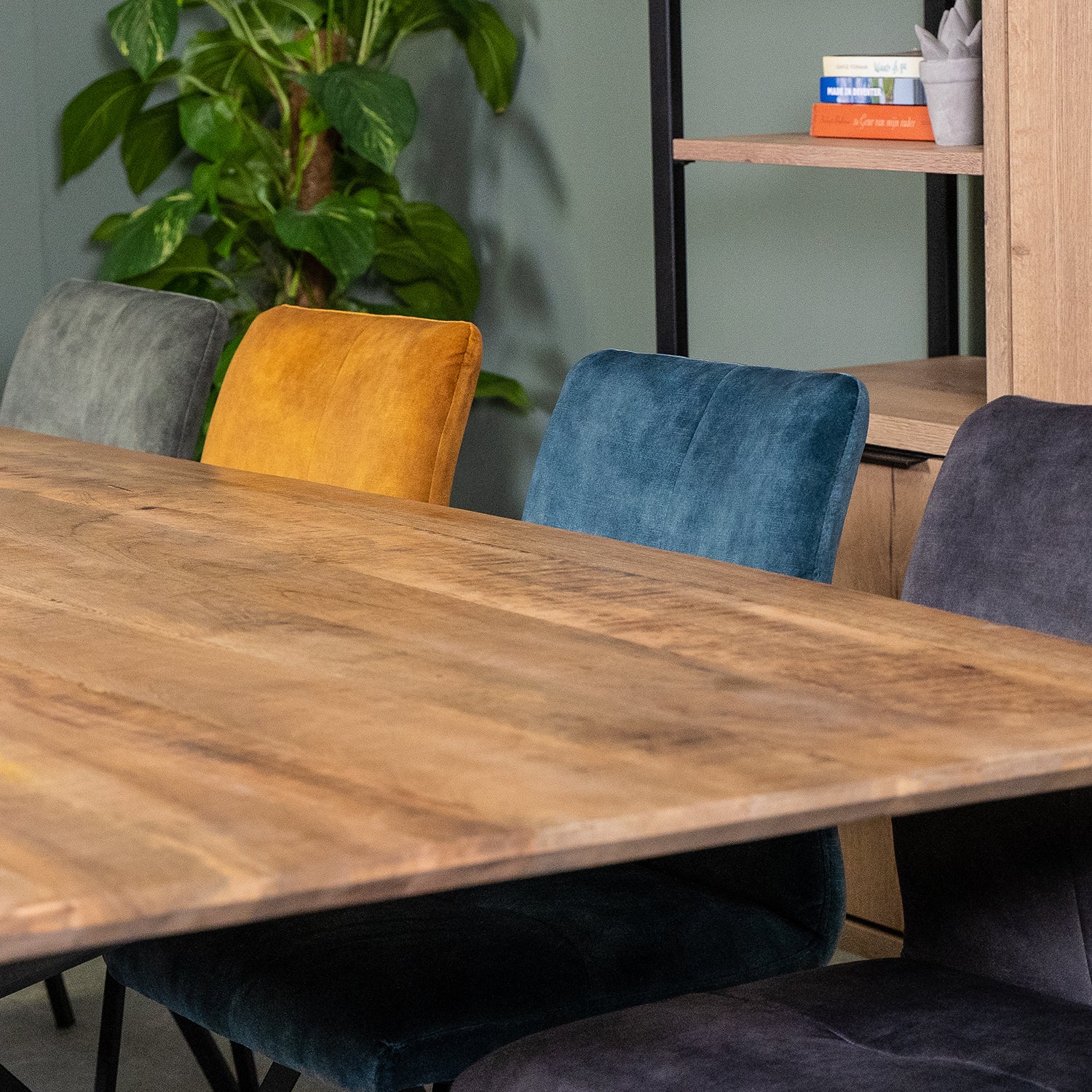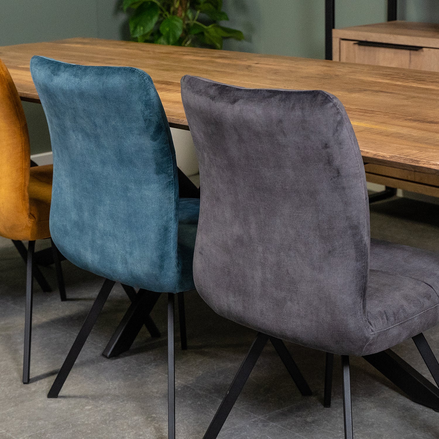 Deze zachte stoel is gemaakt van Adore, en stevige maar lekker zachte en warme stof. De stoel heeft geen armleuningen. Eetkamerstoel Jens is beschikbaar in de kleuren: Antraciet, Hunter, Oker geel en Licht blauw. De poten zijn van ijzer gemaakt en ze zijn met een zwarte finish afgewerkt.