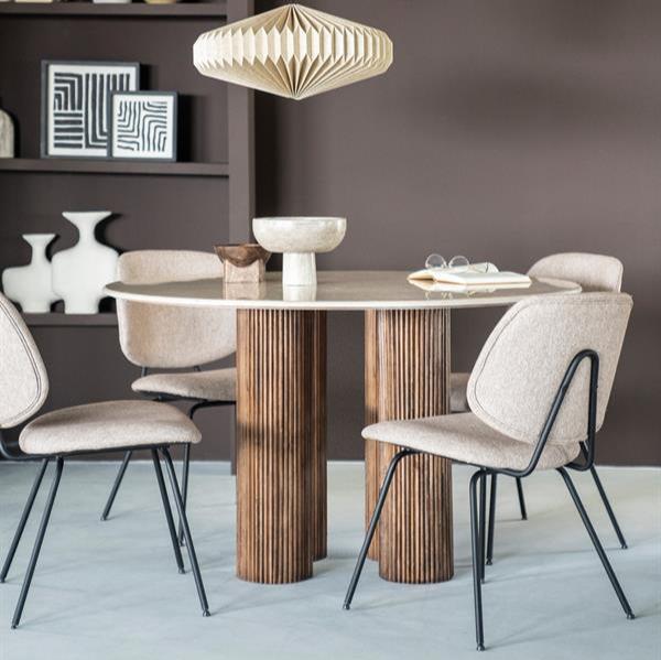 Het gebruik van duurzaam polyester zorgt ervoor dat de stoel makkelijk te onderhouden is en lang mooi blijft. De zachte kleuren beige en grijs geven een rustige en tijdloze uitstraling, terwijl de roze variant een speelse en frisse touch toevoegt aan je eetkamer. De eetkamerstoel Lynn is de ideale keuze voor wie op zoek is naar een combinatie van esthetiek en functionaliteit.