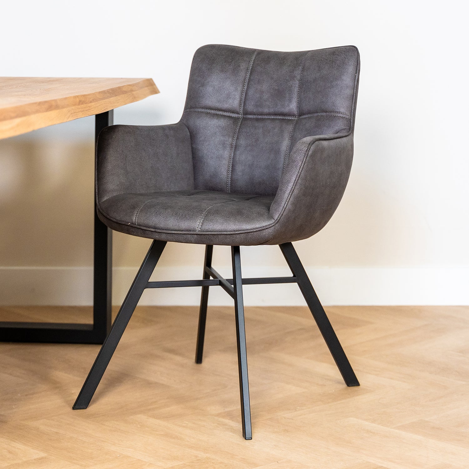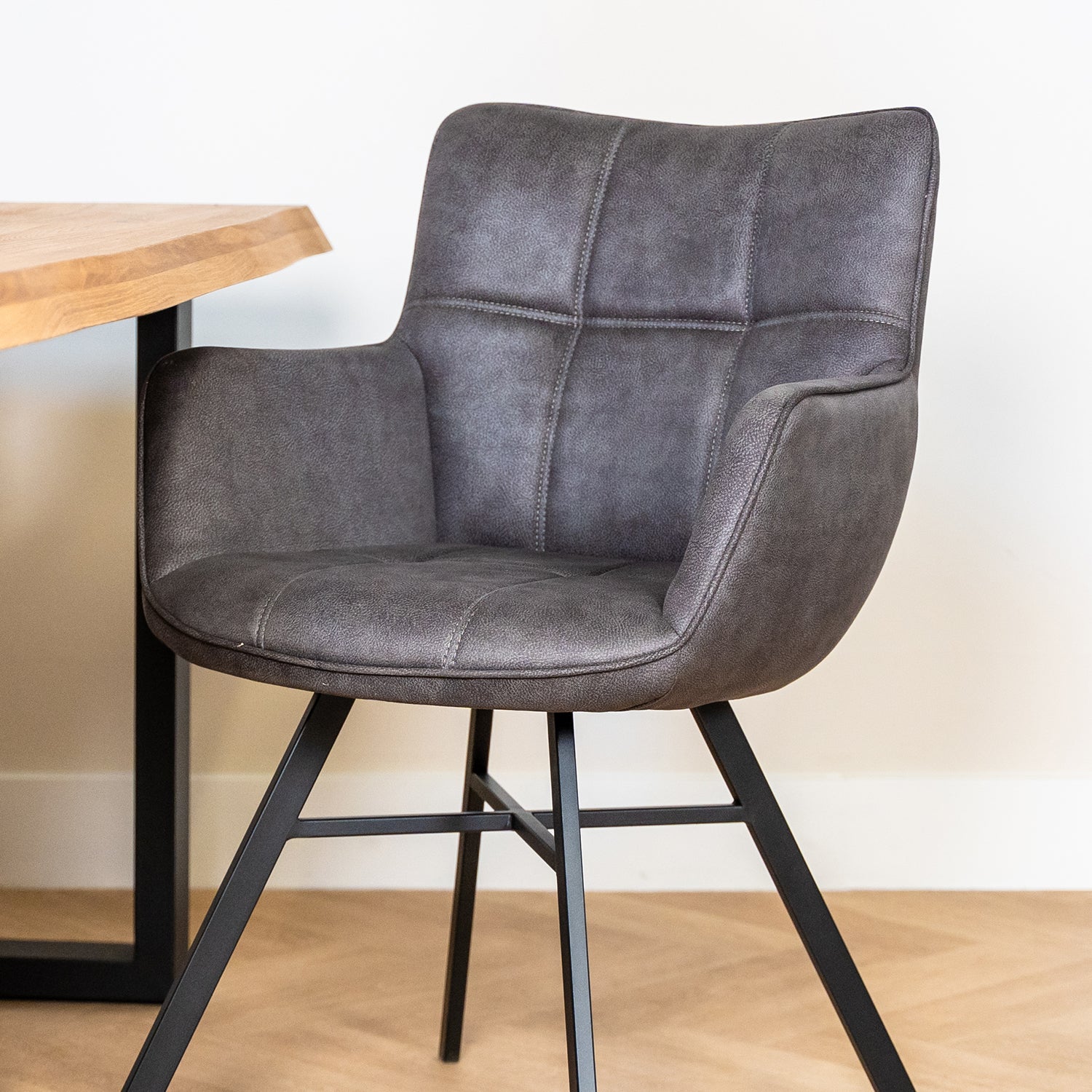 Deze stoel heeft niet alleen een prachtig aanzien, maar is ook nog erg comfortabel en praktisch. Dit komt door de armleuningen die prachtig zijn verwerkt in het design. De microvezelstof maakt deze eetkamerstoel erg praktisch in gebruik, want dit is een stof die duurzaam, sterk en makkelijk schoon te houden is.
