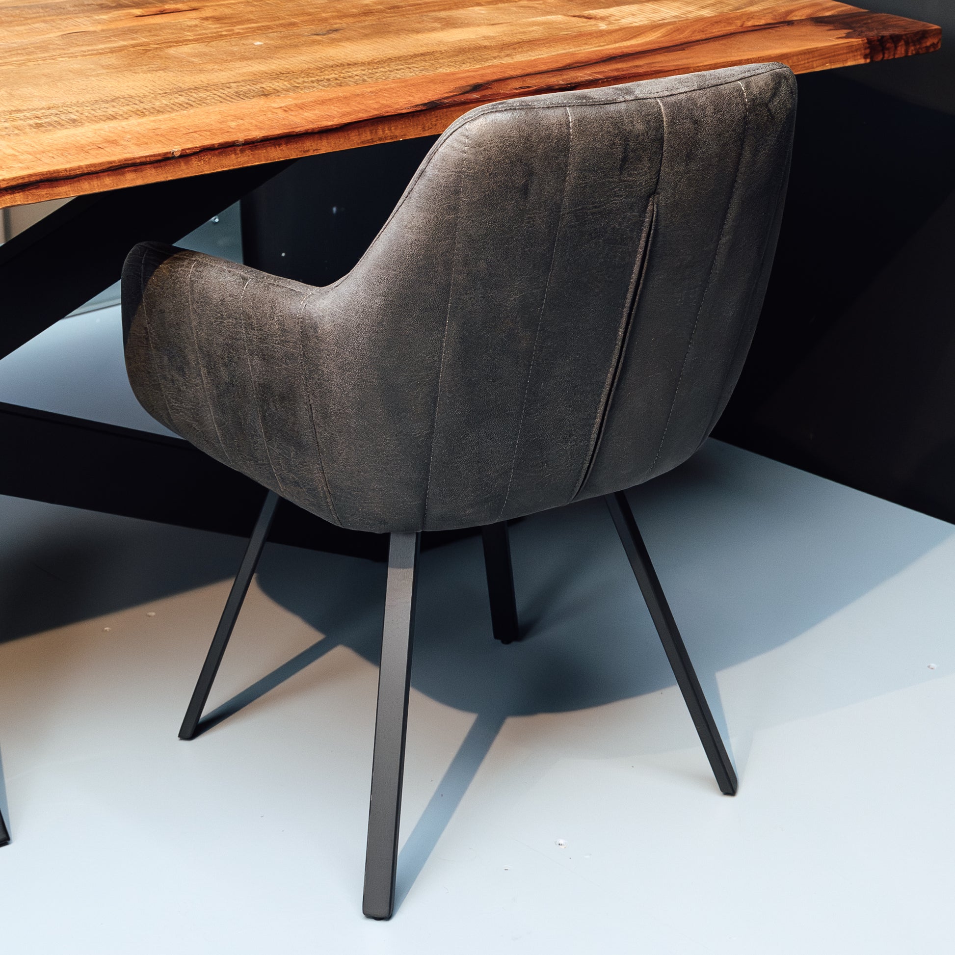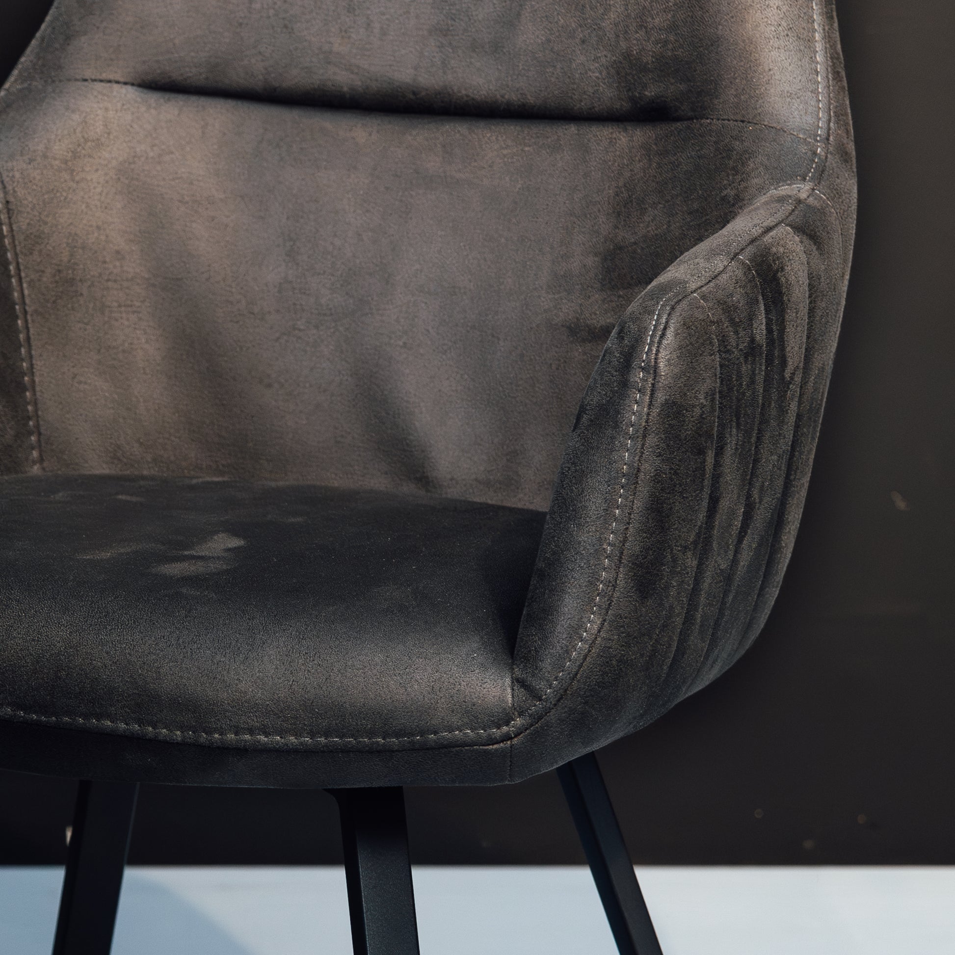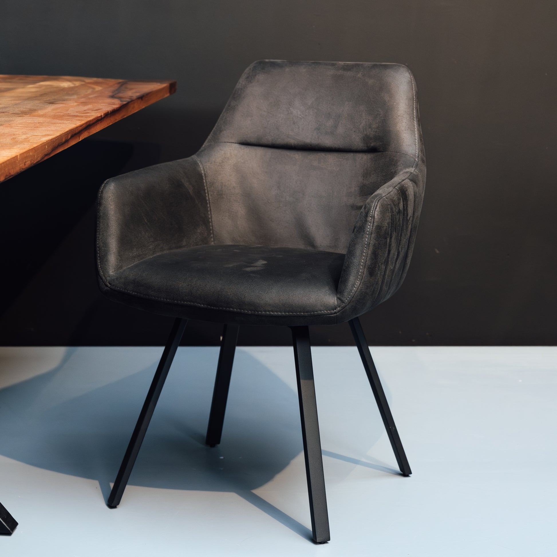De bekleding van Bull stof geeft de eetkamerstoel Raaf een luxe en stoere uitstraling. Deze stof is niet alleen zacht en comfortabel, maar ook slijtvast en makkelijk te onderhouden. Het draaibare ontwerp maakt de stoel bovendien extra praktisch en veelzijdig, ideaal voor een dynamische eetkameromgeving.