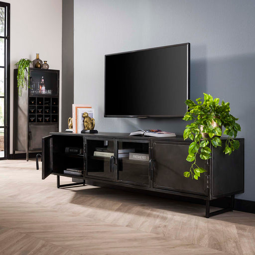 Ons assortiment omvat zowel open ontwerpen voor een luchtige uitstraling als modellen met lades of kastjes voor extra opbergruimte. Deze meubels zijn vaak een combinatie van metaal en hout, waarbij het zwarte metaal zorgt voor een strak en modern uiterlijk, terwijl de houten elementen een warme en natuurlijke touch toevoegen. Of je nu kiest voor een open design of een model met meer opbergruimte, een zwart metalen tv-meubel is een functionele en stijlvolle aanvulling op elke woonruimte.