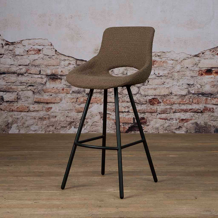 De teddystof geeft de barkruk een warme en zachte uitstraling voor in een interieur, Deze warme uitstraling komt vooral door de stof die in natuurlijke aardekleuren beschikbaar is. Namelijk de kleuren Teddy Wit, Teddy Lichtbruin en Teddy Donkerbruin.