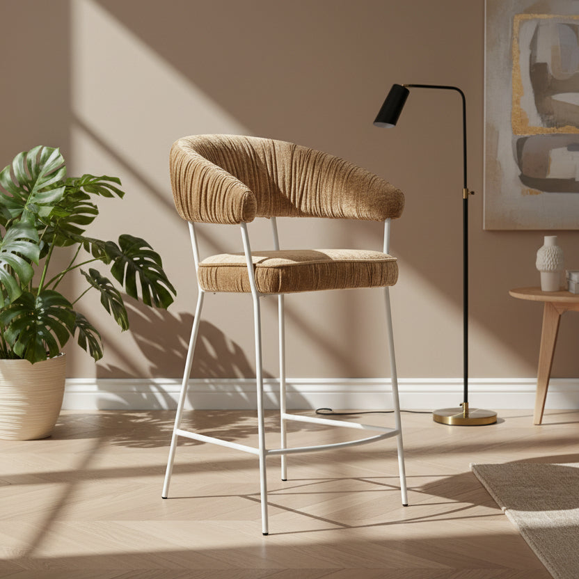 Met de Barkruk Lizzy in geel stof creƫer je een vrolijke, moderne setting die elke ruimte opfleurt.