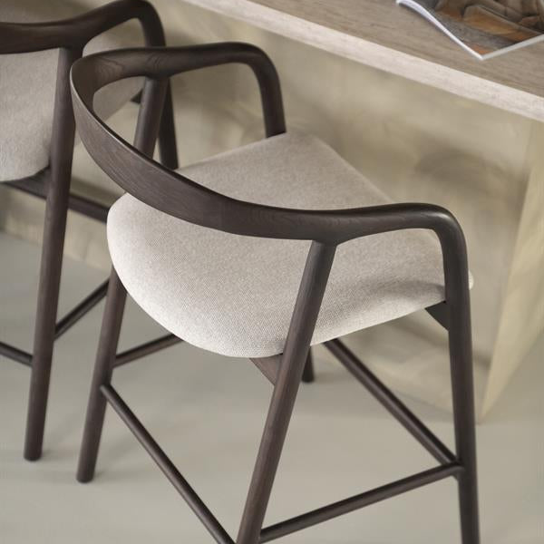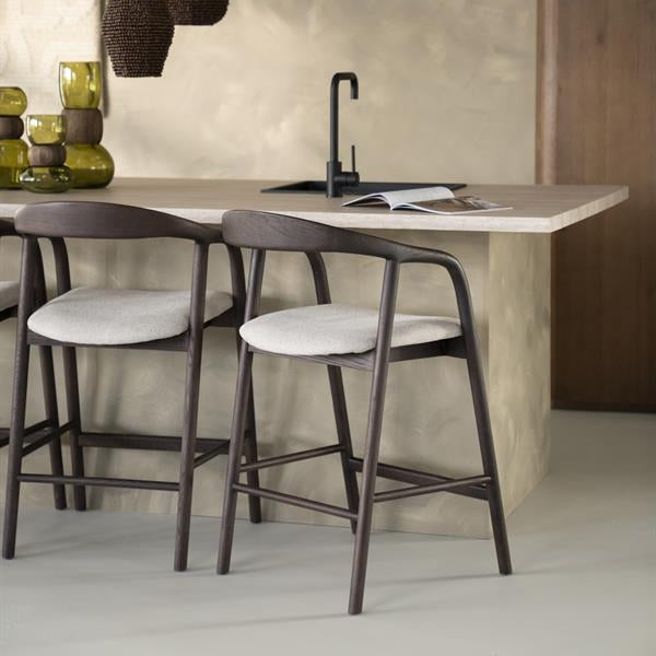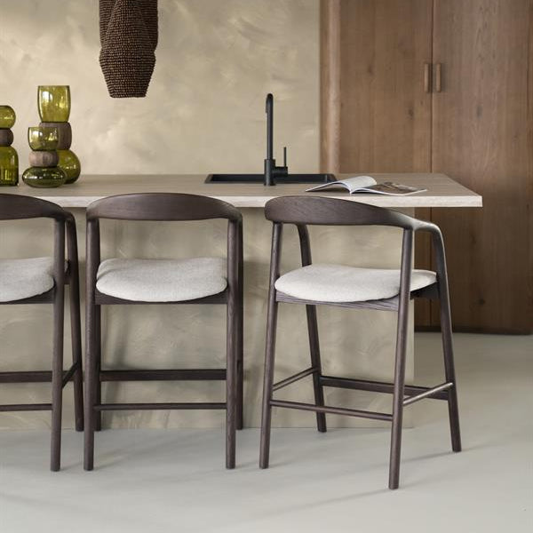 De barkruk Rayven – donkerbruin essenhout laag is een elegante en compacte zitoplossing met een rijke uitstraling. Het diepe, warme donkerbruine essenhout geeft deze lage barkruk van essenhout een luxe en tijdloos karakter, terwijl het luchtige ontwerp zorgt voor visuele rust in de ruimte. Dankzij de lagere zithoogte is deze barkruk ideaal voor keukenblokken op standaardhoogte, informele zitplekken of als stijlvolle aanvulling bij een lage bar.