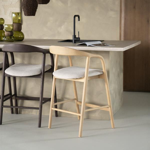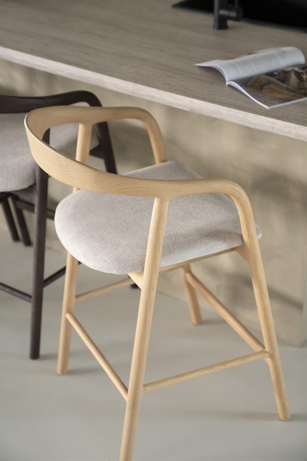 Het ontwerp kenmerkt zich door zachte rondingen en een elegant organisch design, waardoor de barkruk luchtig en toegankelijk oogt. Dankzij het compacte formaat en de open structuur is Rayven ook zeer geschikt voor kleinere keukens of city apartments. De lichte houtkleur combineert prachtig met neutrale tinten en natuurlijke materialen zoals linnen, keramiek of beton. Met zijn ingetogen esthetiek en natuurlijke afwerking past Rayven naadloos in een Scandinavisch interieur of Japandi woonstijl.