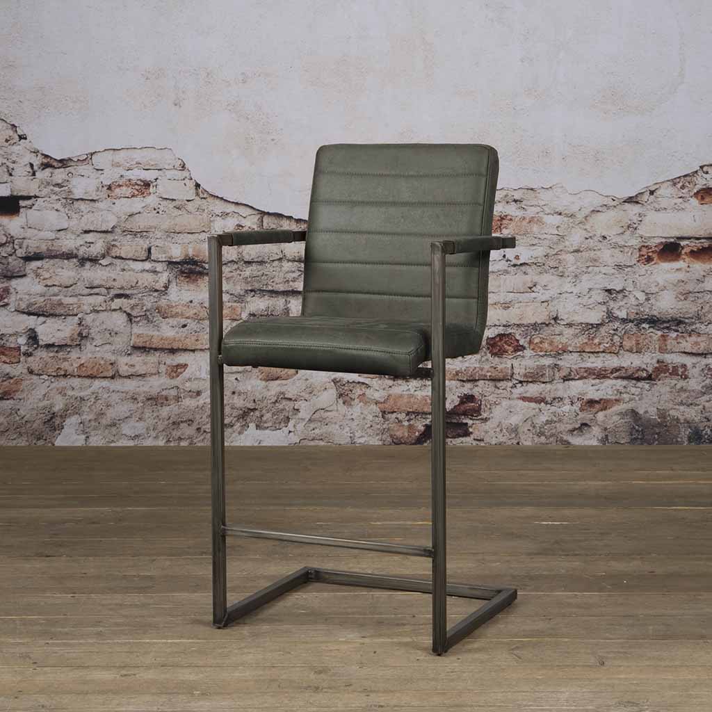 Deze barkruk heeft een vierkant, grijs metalen frame. Het grijze metalenframe loopt door van de armleuningen tot aan de sleepoot. Fijn is ook dat er in het frame een mogelijkheid is verwerkt om voeten op te plaatsen. Dit geeft een extra zit comfort.