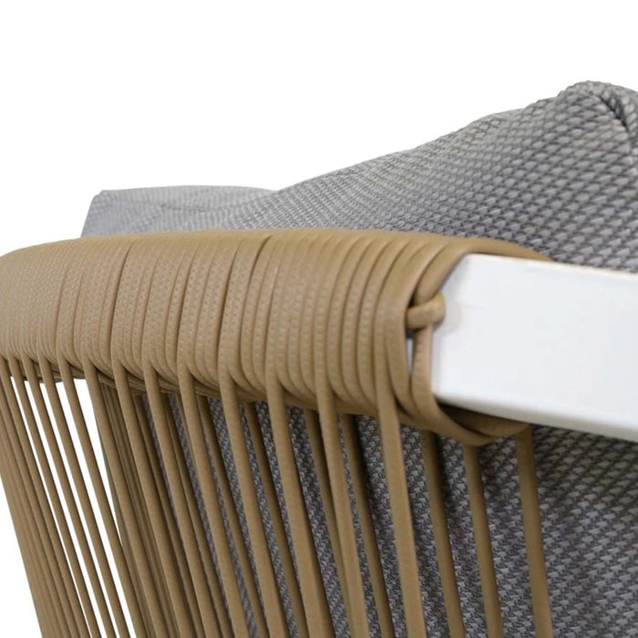 Het witte gepoedercoate aluminium frame geeft de stoel een elegante en verfijnde look die moeiteloos past bij diverse tuininrichtingen. Of je nu extra zitplaatsen nodig hebt voor je buitenbar of een comfortabele plek om van je tuin te genieten, deze barstoel biedt de perfecte oplossing.
