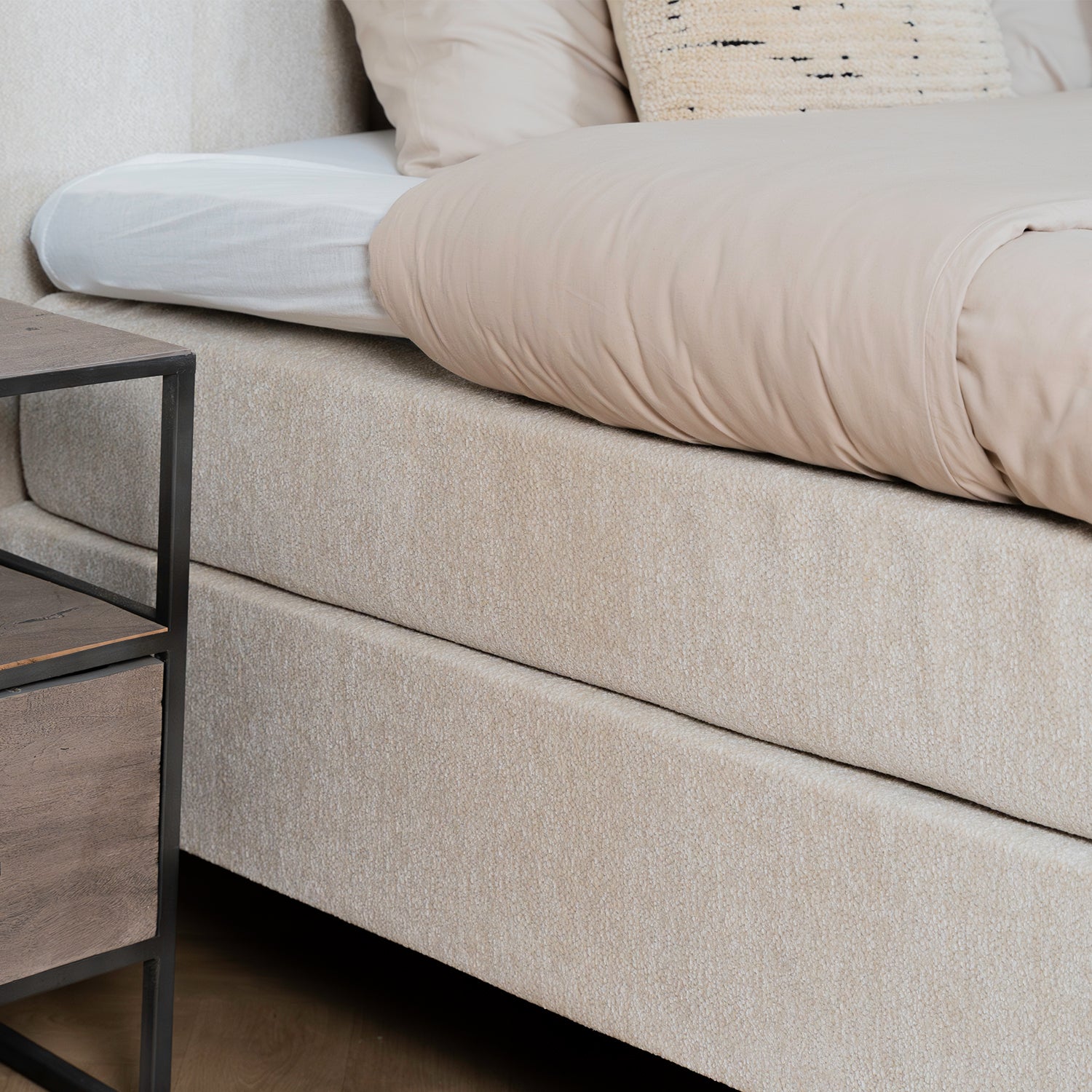 Bed Ella | Stof Beige | Inclusief Matras & Topper