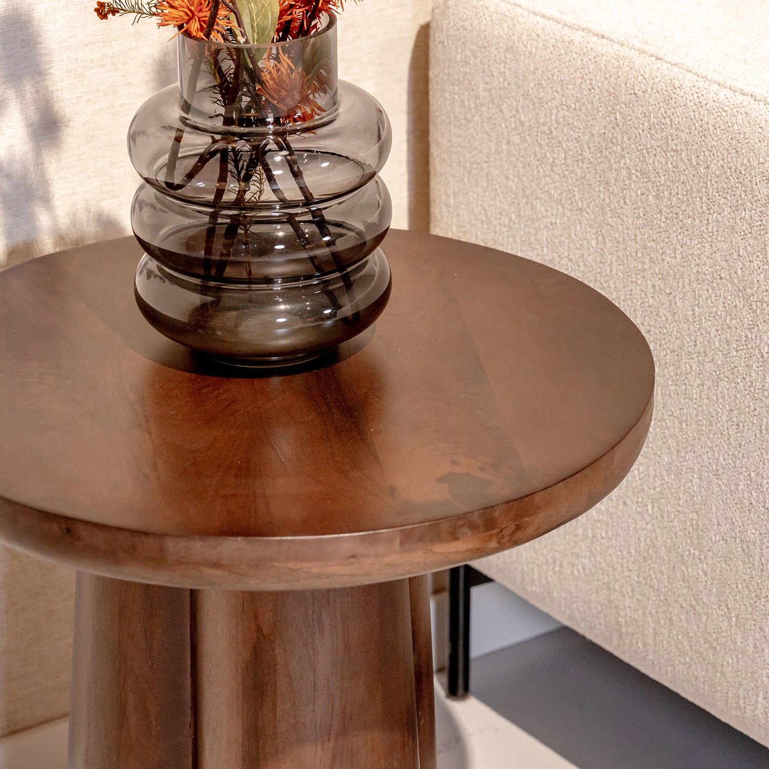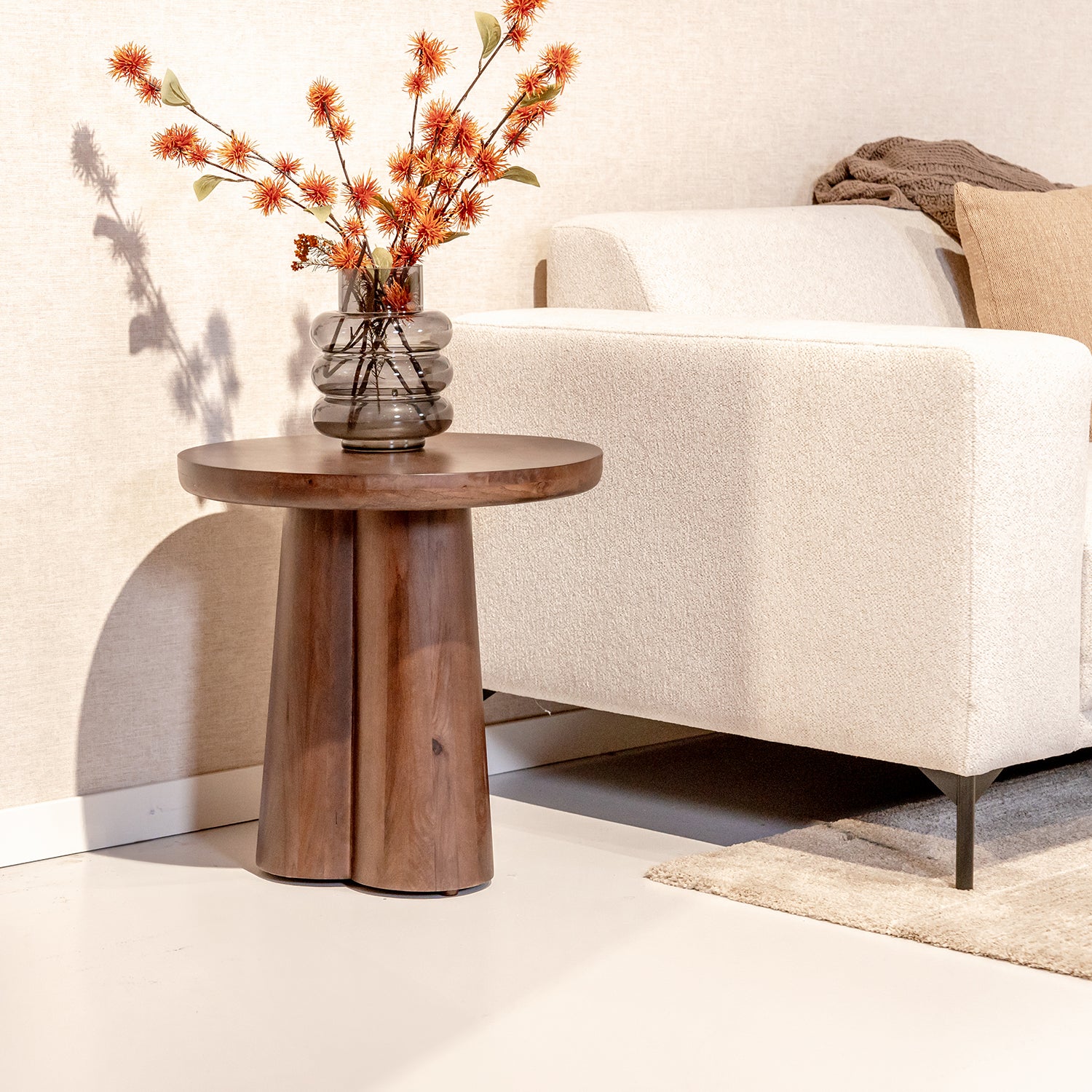Maak kennis met onze prachtige mangohouten Bijzettafel Clubs, de perfecte aanvulling voor jouw woonkamer. Deze ronde bijzettafel, gemaakt van hoogwaardig bruin mangohout, voegt een vleugje natuurlijke warmte en elegantie toe aan je interieur.