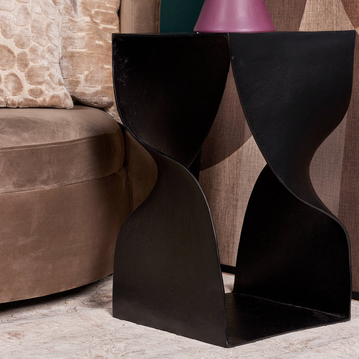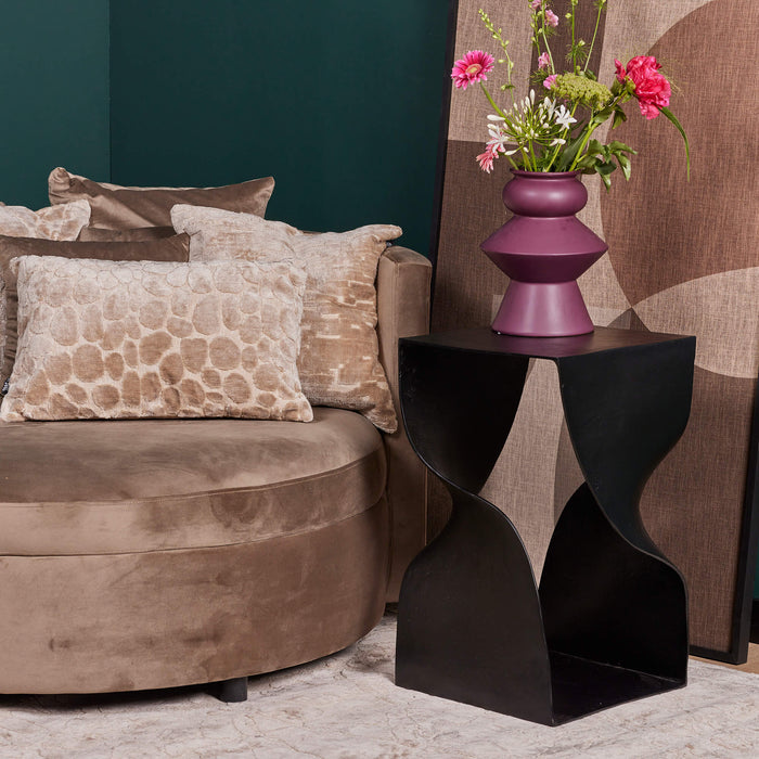 Bijzettafel Dale is een bijzettafel gemaakt van aluminium. De vierkante bijzettafel is afgewerkte met een mat zwarte finish.