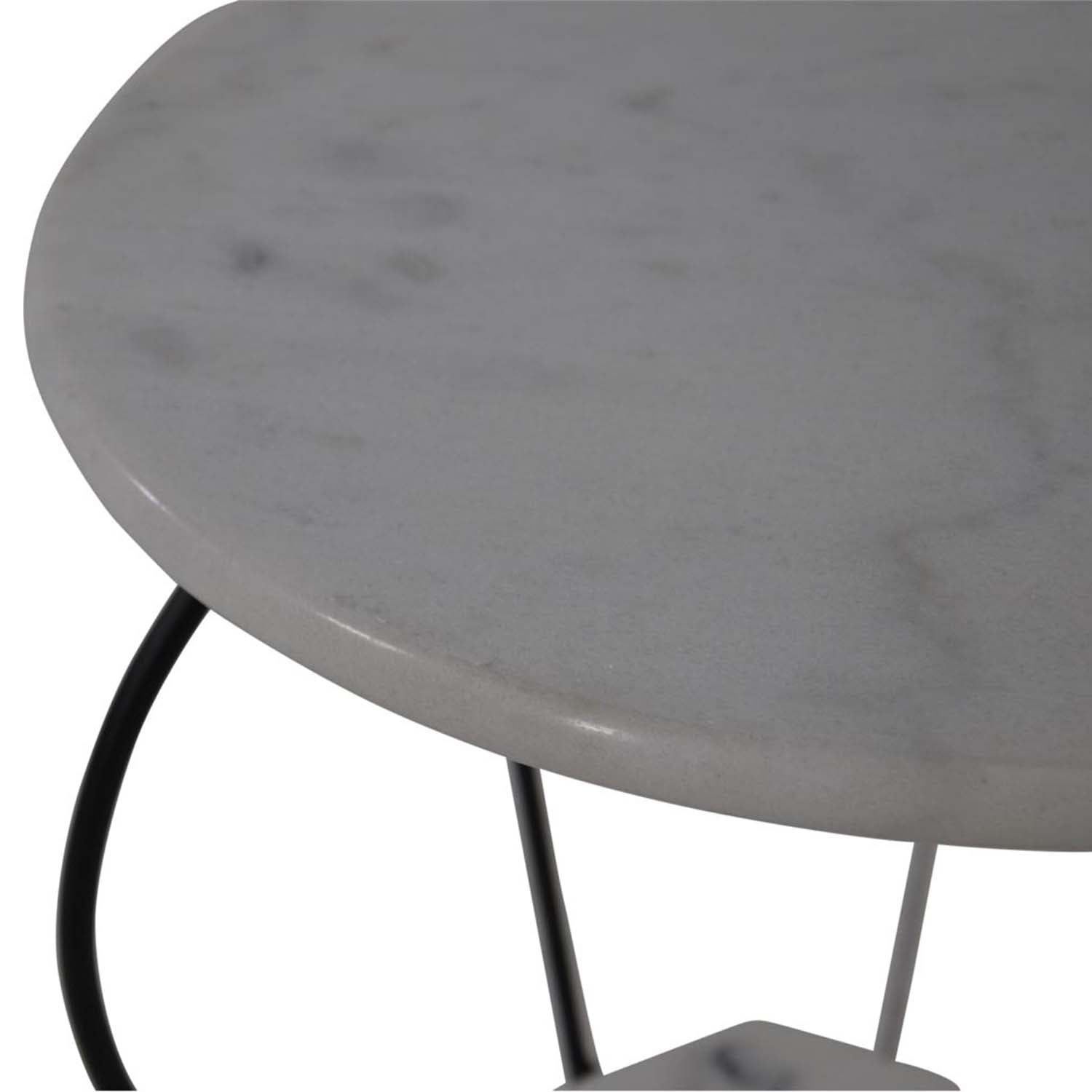 De ronde, wit gemarmerde tafelblad van 1,8 cm dik geeft de tafel een luxe en verfijnde look die moeiteloos past bij diverse interieurstijlen. Of je nu extra tafelruimte nodig hebt naast je bank of een stijlvolle plek om je decoraties te presenteren, deze bijzettafel marmer biedt de perfecte oplossing.