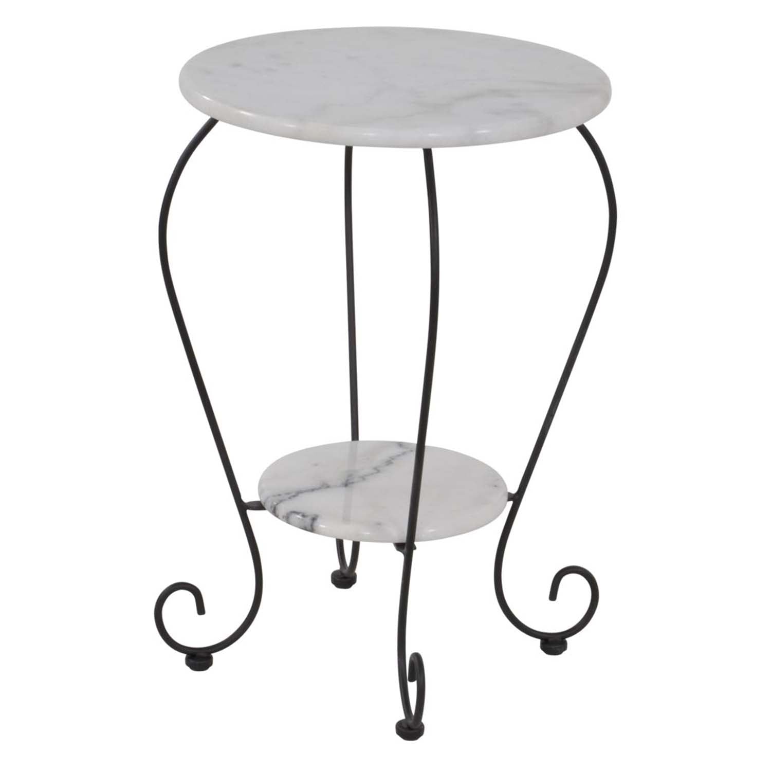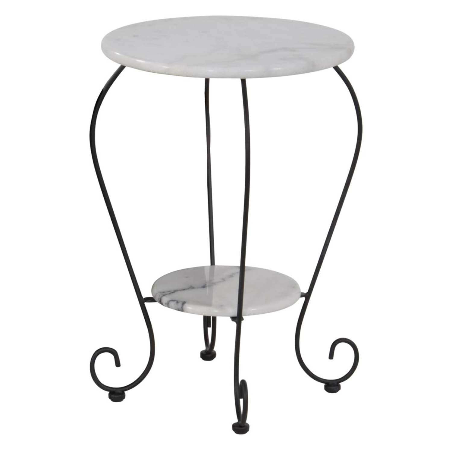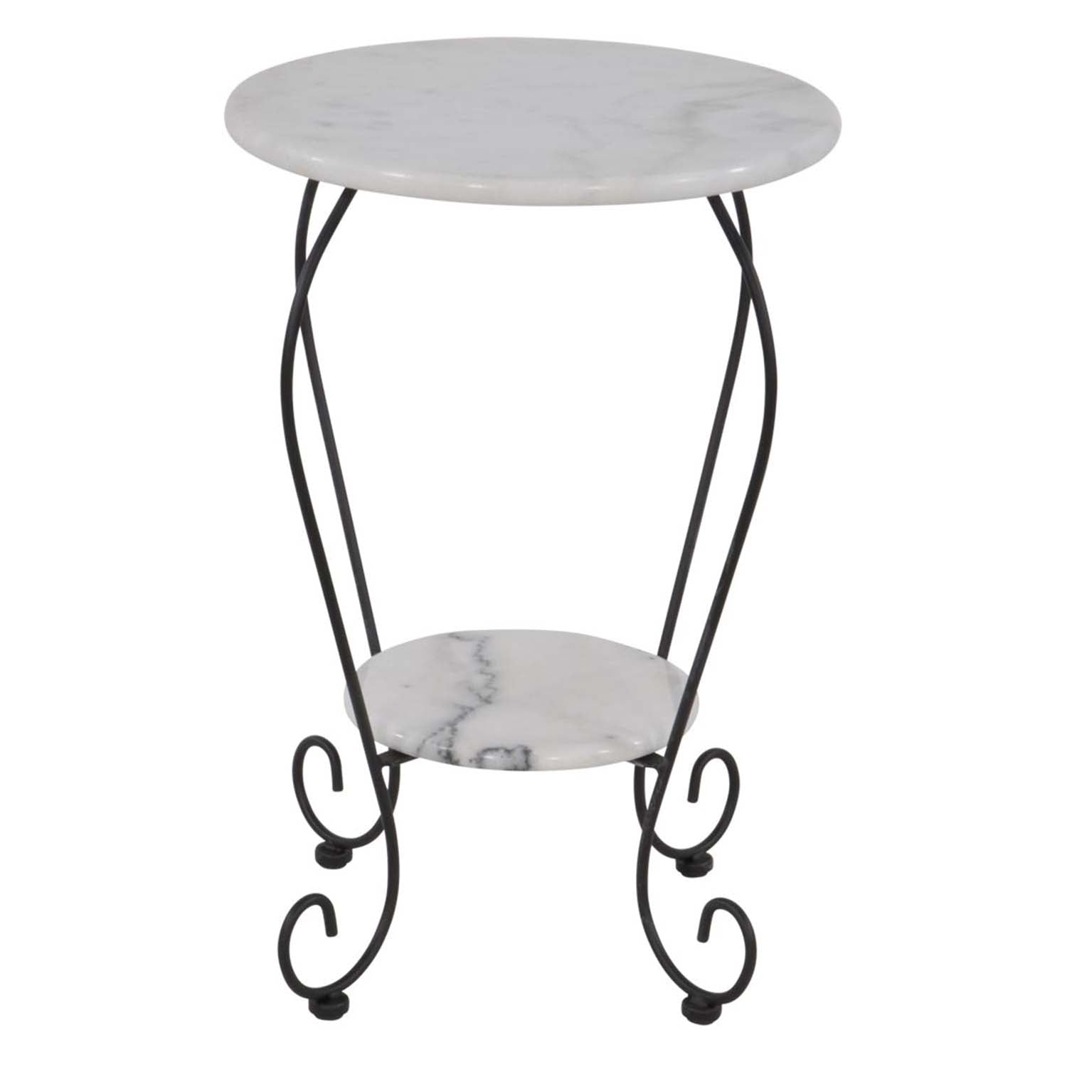 Dit meubelstuk is voorzien van een stevig ijzeren onderstel, zwart gelakt, wat zorgt voor extra stabiliteit en duurzaamheid. De afmetingen van ø25/ø41x59 cm maken hem compact en praktisch, ideaal voor veelzijdig gebruik. Het marmeren materiaal is niet alleen esthetisch aantrekkelijk maar ook slijtvast, waardoor de tafel langdurig zijn kwaliteit behoudt.