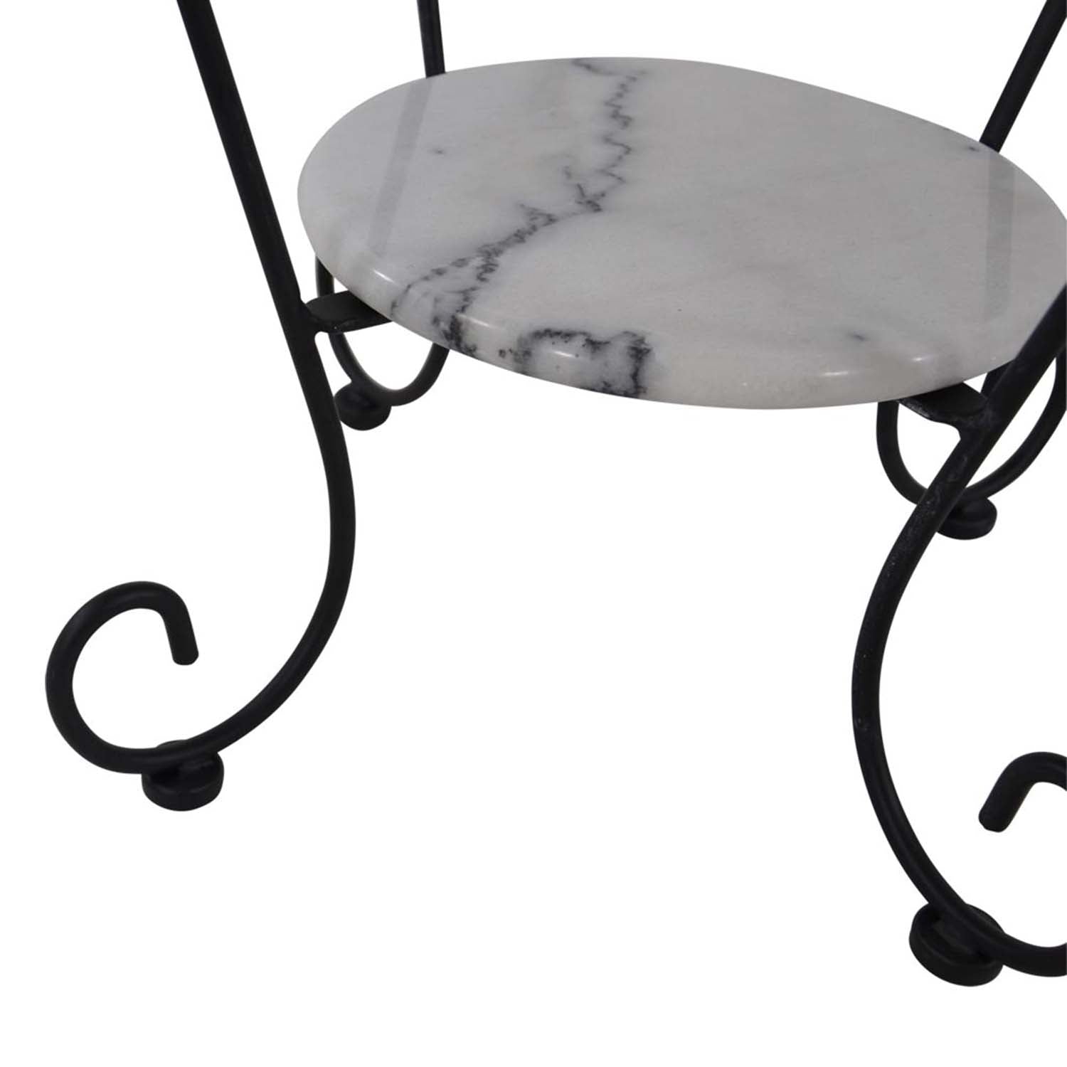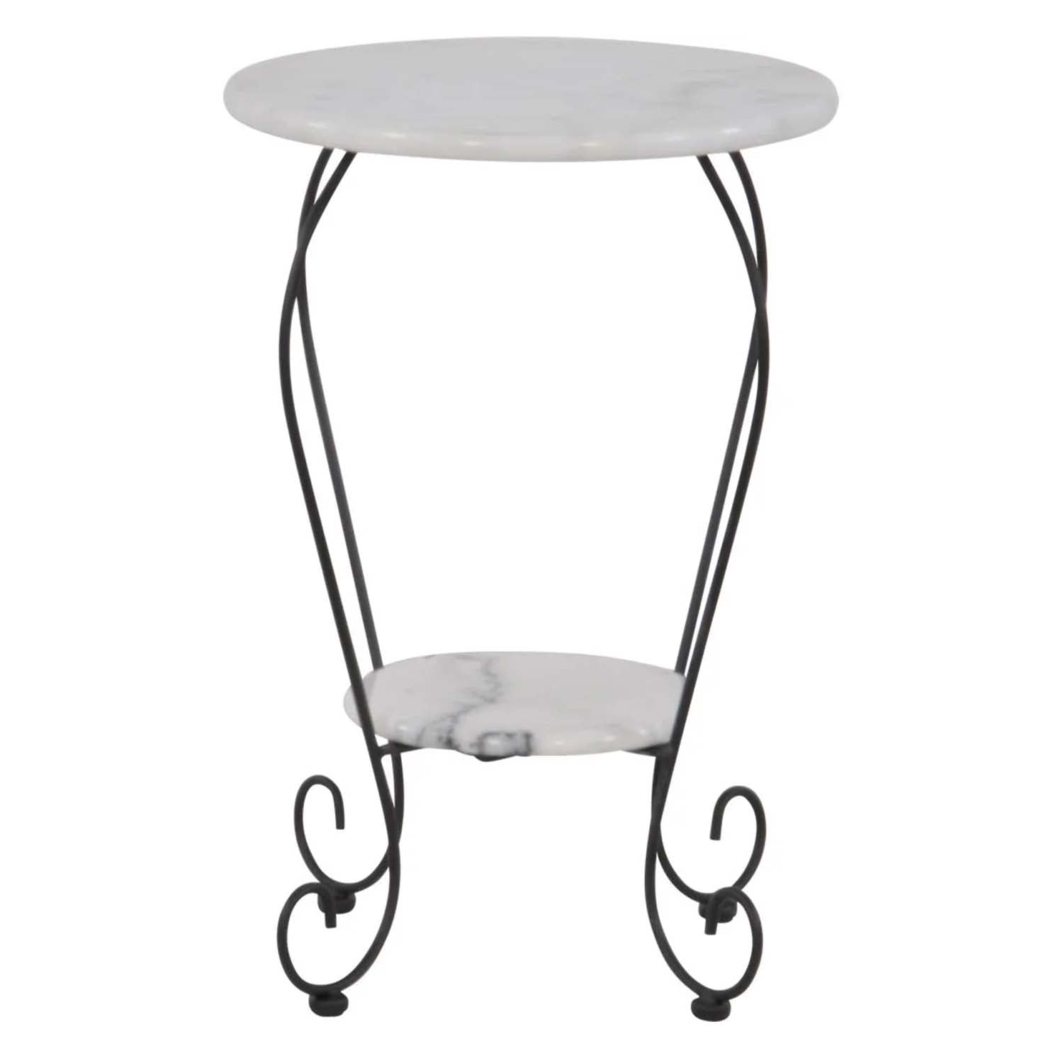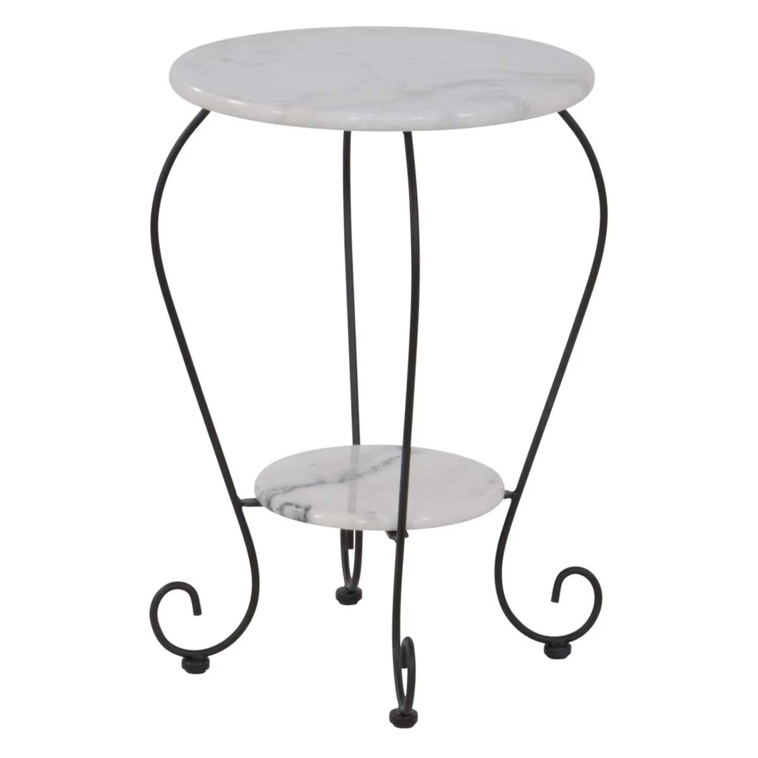 Dit meubelstuk is voorzien van een stevig ijzeren onderstel, zwart gelakt, wat zorgt voor extra stabiliteit en duurzaamheid. De afmetingen van ø25/ø41x59 cm maken hem compact en praktisch, ideaal voor veelzijdig gebruik. Het marmeren materiaal is niet alleen esthetisch aantrekkelijk maar ook slijtvast, waardoor de tafel langdurig zijn kwaliteit behoudt.