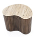 De Bijzettafel Mari voegt een vleugje aardse elegantie toe aan uw interieur met zijn bijzondere bruine travertin tafelblad. Dit natuursteen staat bekend om zijn unieke textuur en warme kleurschakeringen, wat elke tafel een eigen karakter geeft. Het minimalistische metalen onderstel biedt een moderne uitstraling en zorgt tegelijkertijd voor stabiliteit en balans, waardoor deze tafel moeiteloos in diverse interieurstijlen past. Perfect als bijzettafel naast de bank of als pronkstuk in de zithoek.