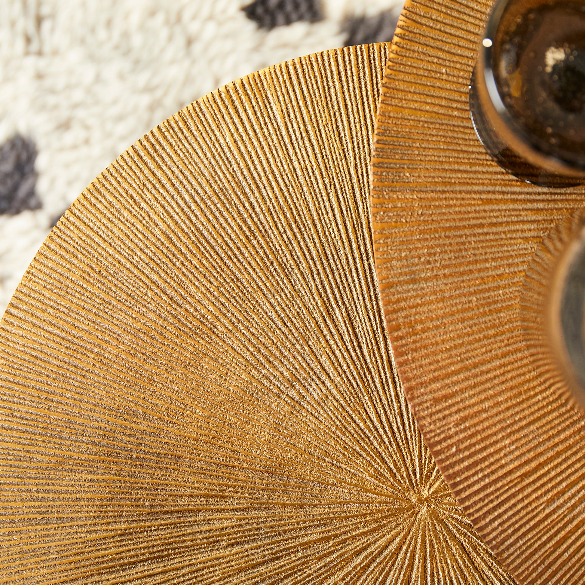 Maak kennis met de Bijzettafel Set Ryas. Deze ronde bijzettafels is gemaakt van aluminium met een gouden finish. Deze bijzettafel set is een opvallend element in de ruimte met zijn gouden blad en zwarte poten. Deze gouden bijzettafel kan perfect naast je bank staan om daar je heerlijke kop koffie, kop thee of koud biertje neer te zetten tijdens het kijken van je favoriete serie of sportwedstrijd.