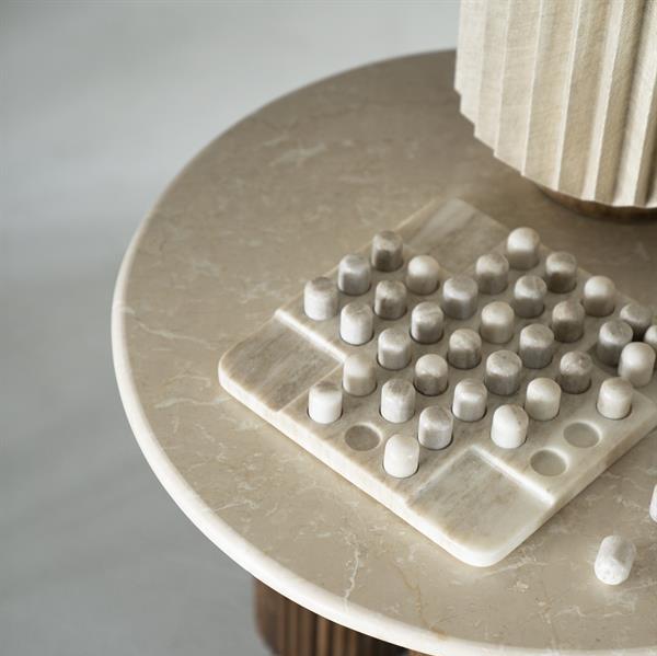 Creëer een luxueuze sfeer in je huis door de bijzettafel Vince te combineren met andere hoogwaardige materialen zoals messing of hout. Plaats een mooie vaas of kaarsenhouder op de tafel om het geheel compleet te maken.