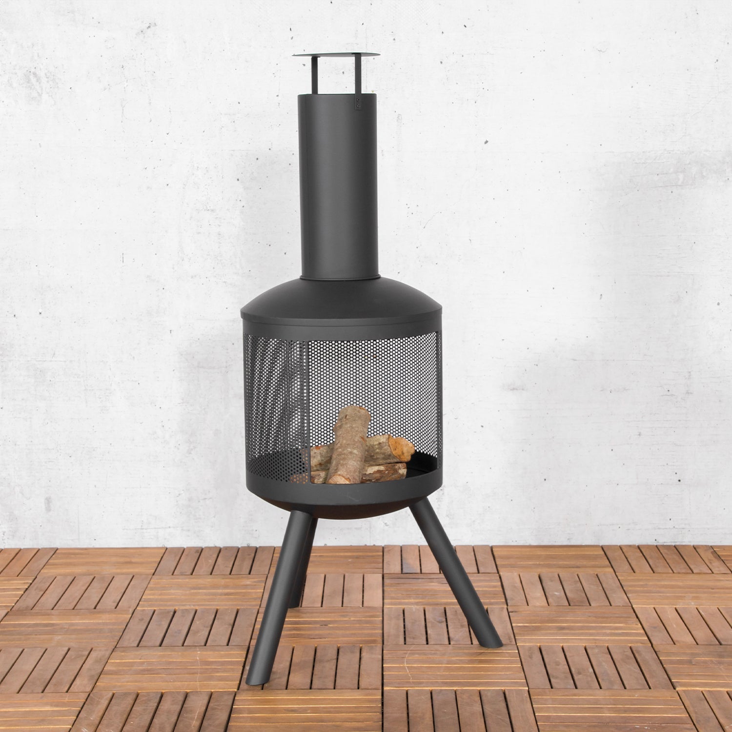 De sfeerhaard is perfect voor het creëren van een warme en uitnodigende sfeer tijdens koele avonden. Gemaakt van hoogwaardig zwart metaal, combineert deze haard duurzaamheid met een elegant ontwerp dat naadloos past in elke buitenomgeving.