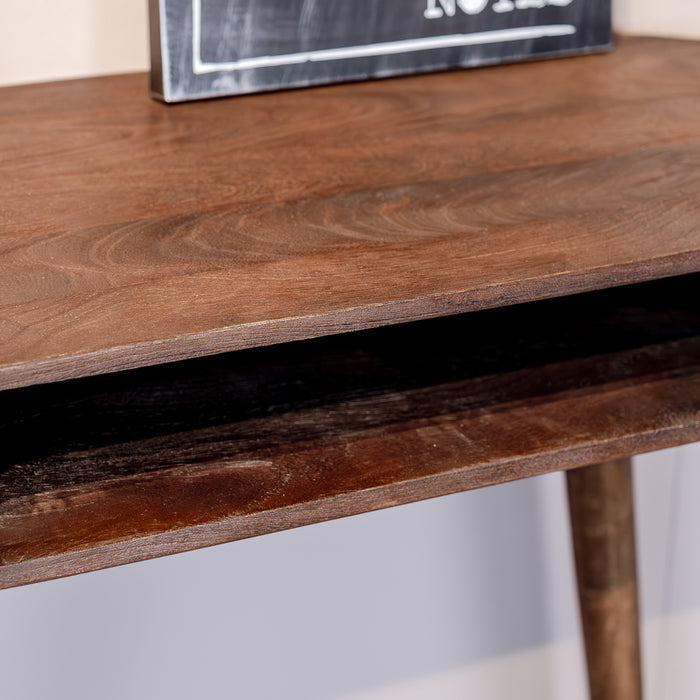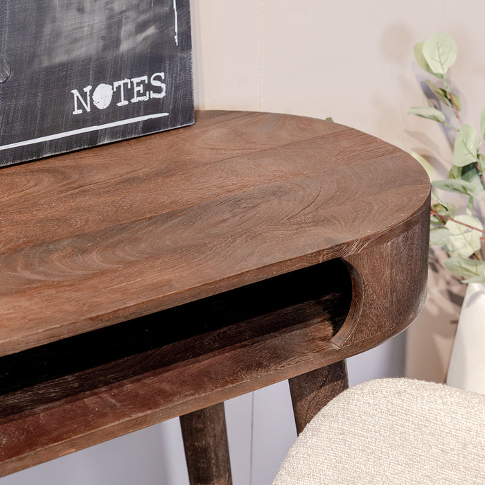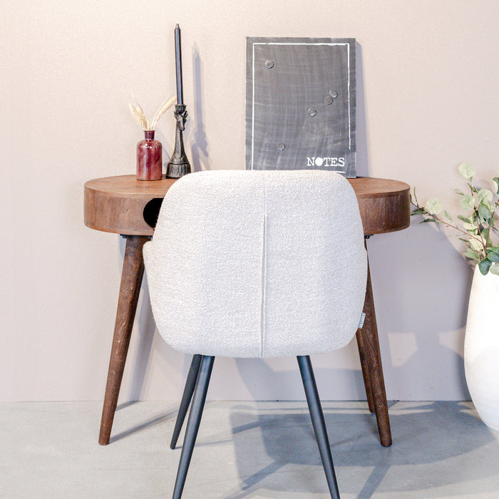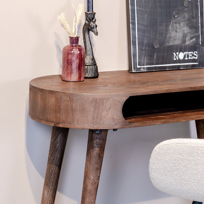 Bureau Bella is gemaakt van mangohout. Mangohout heeft de kenmerken: duurzaam, stevig, makkelijk in onderhoud en een chique uitstraling. De poten 4 mangohouten poten zorgen voor stevigheid en stabiliteit.