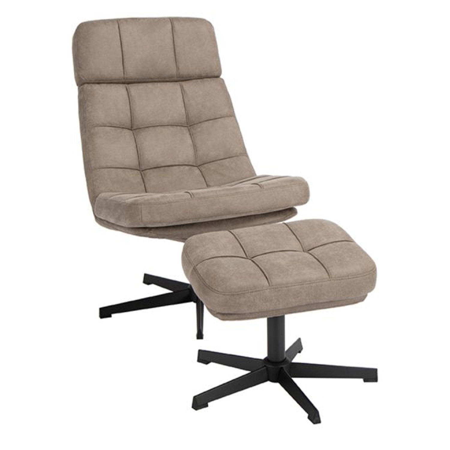 Maak kennis met het Draaifauteuil Alvar in Taupe Micro Suede. Deze Draaifauteuil is verkrijgbaar met en zonder hocker.