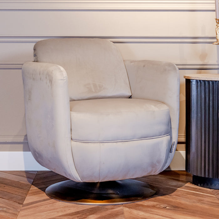 Draaifauteuil Turner valt gelijk op door zijn moderne en unieke uitstraling. Dit effect wordt gecreëerd door de prachtige hoogwaardige en mega zachte velvet stof.