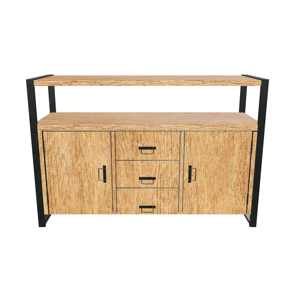 Dressoir Britt Mangohout is een stoer dressoir met een prachtige warme uitstraling. Het zwarte staal gecombineerd met mangohout maken dit meubel speciaal en zorgt ervoor dat hij goed past binnen een industrieel interieur.