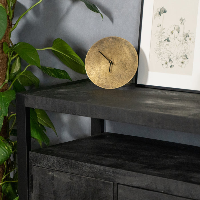 Dit meubelstuk uit de meubelserie Britt Black is een stoere toevoeging aan je interieur. Het metalen frame en de stevige mangohouten planken vormen een stabiel geheel en hebben een trendy industrieel uiterlijk. Lades, kastjes en planken bieden veel ruimte voor allerlei spullen.