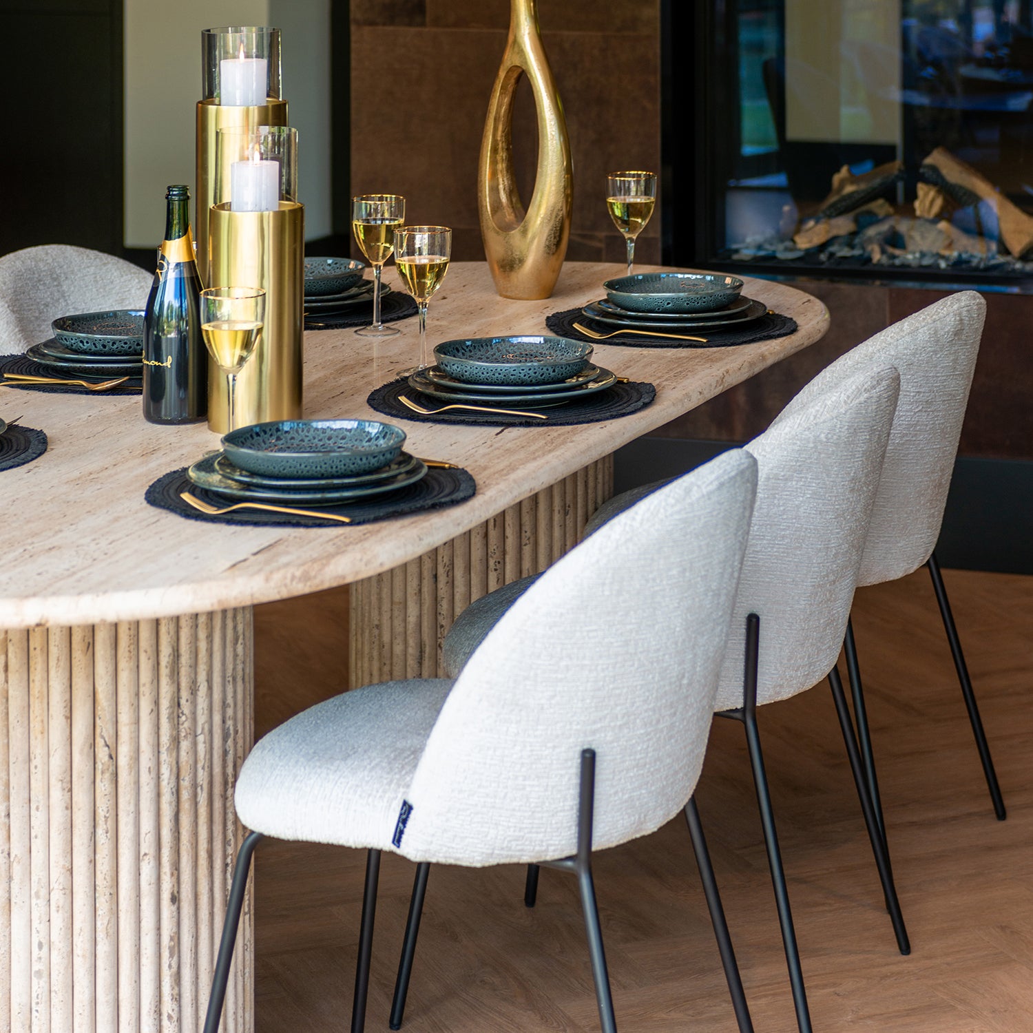 De Eetkamerstoel Alyssa is een veelzijdige toevoeging aan je interieur. Hij past moeiteloos bij veel van onze andere meubels, waardoor je eindeloze combinatiemogelijkheden hebt om je huis gezellig en sfeervol te maken.