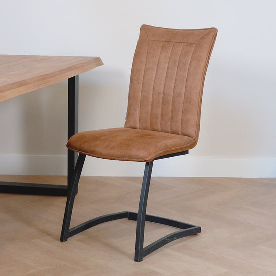 Eetkamerstoel Amara is een fijne eetkamerstoel met een hoge rugleuning en zonder armleuningen. Door de slee poot en hoge rugleunig heeft deze stoel een hele relaxte zit en raden we hem ook zeker aan voor mensen die wat langer zijn.