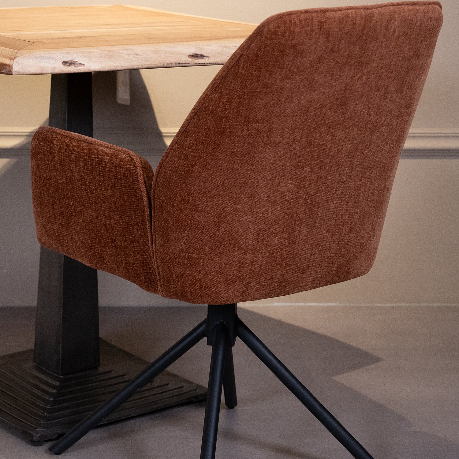 Op zoek naar de perfecte draaibare eetkamerstoel met armleuningen? Maak kennis met onze "Amaro Eetkamerstoel," een eigentijds meubelstuk dat niet alleen stijl toevoegt aan je eetkamer maar ook functionaliteit biedt. Deze draaibare eetkamerstoel, bekleed met hoogwaardige koper stof, is een aanwinst voor ieder interieur.
