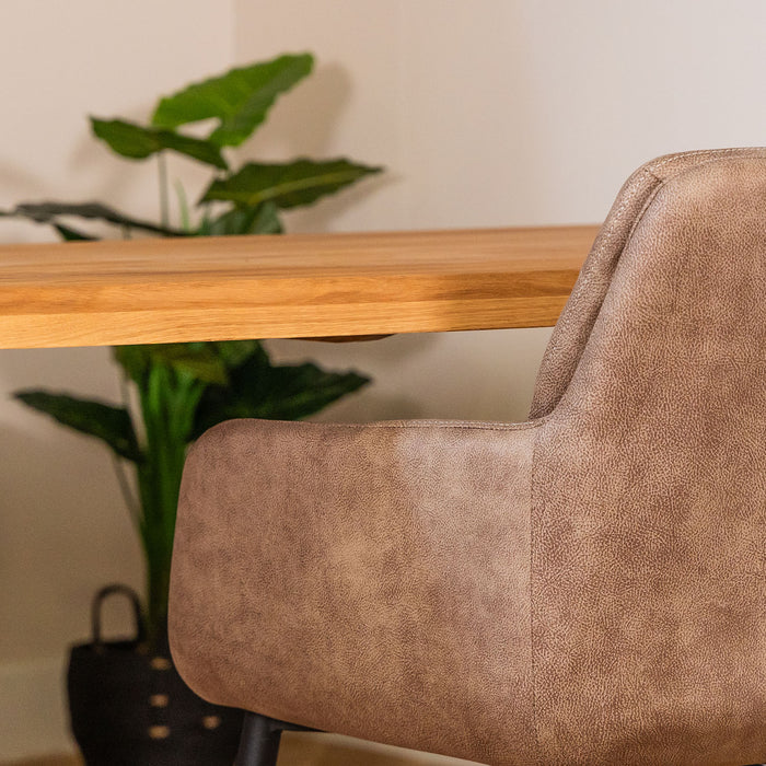 De Eetkamerstoel Bailey is een stijlvolle en comfortabele keuze voor jouw eetkamer. Deze eetkamerstoel met armleuningen biedt de perfecte zitcomfort. Gemaakt van duurzame microstof, is deze stoel zacht en stevig tegelijkertijd. Het industriële en moderne ontwerp past perfect bij de huidige interieurtrends.