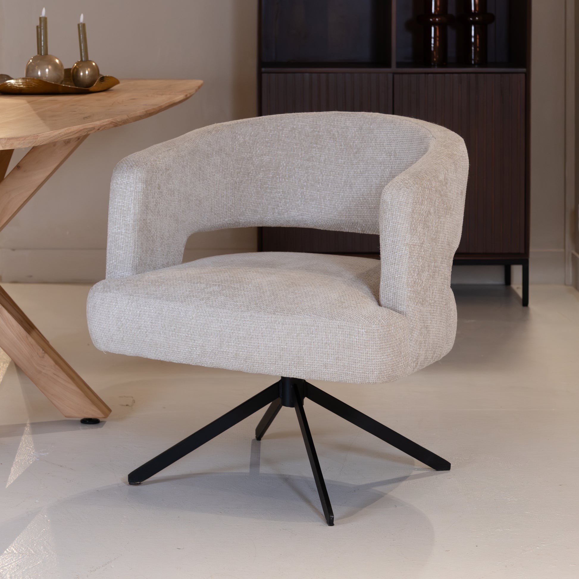 Ervaar ultiem comfort en stijl met de eetkamerstoel Baldr in Cream. Deze kuipstoel met armleuningen biedt niet alleen een aangename zitervaring, maar ook een unieke functionaliteit dankzij de opening aan de achterzijde, waardoor je gemakkelijk naar achteren kunt schuiven voor extra comfort. De zachte stoffering en het ontwerp voegen een vleugje elegantie toe aan elke eetruimte.