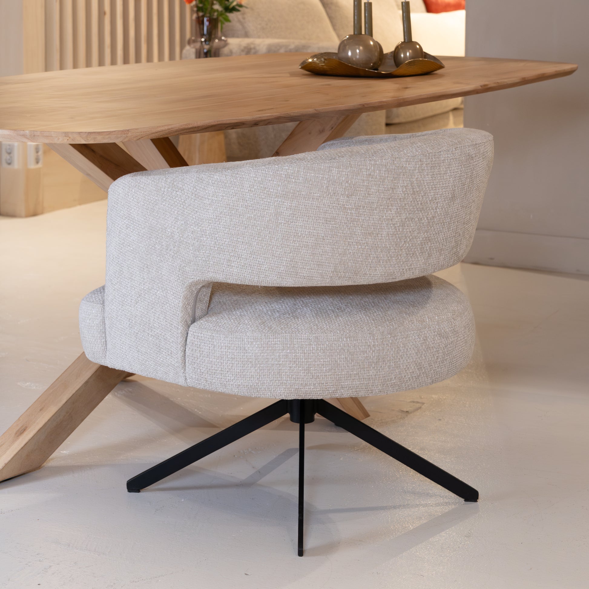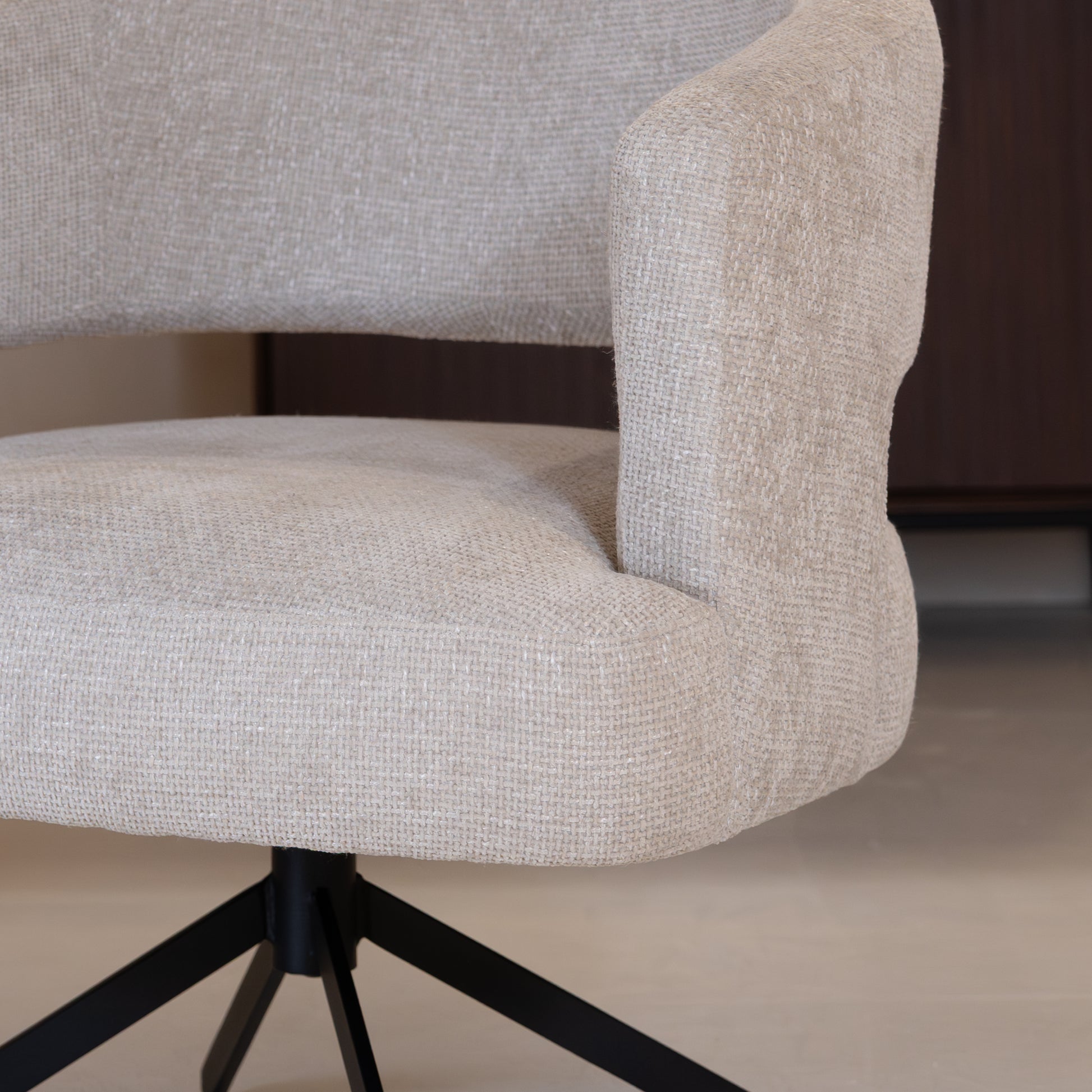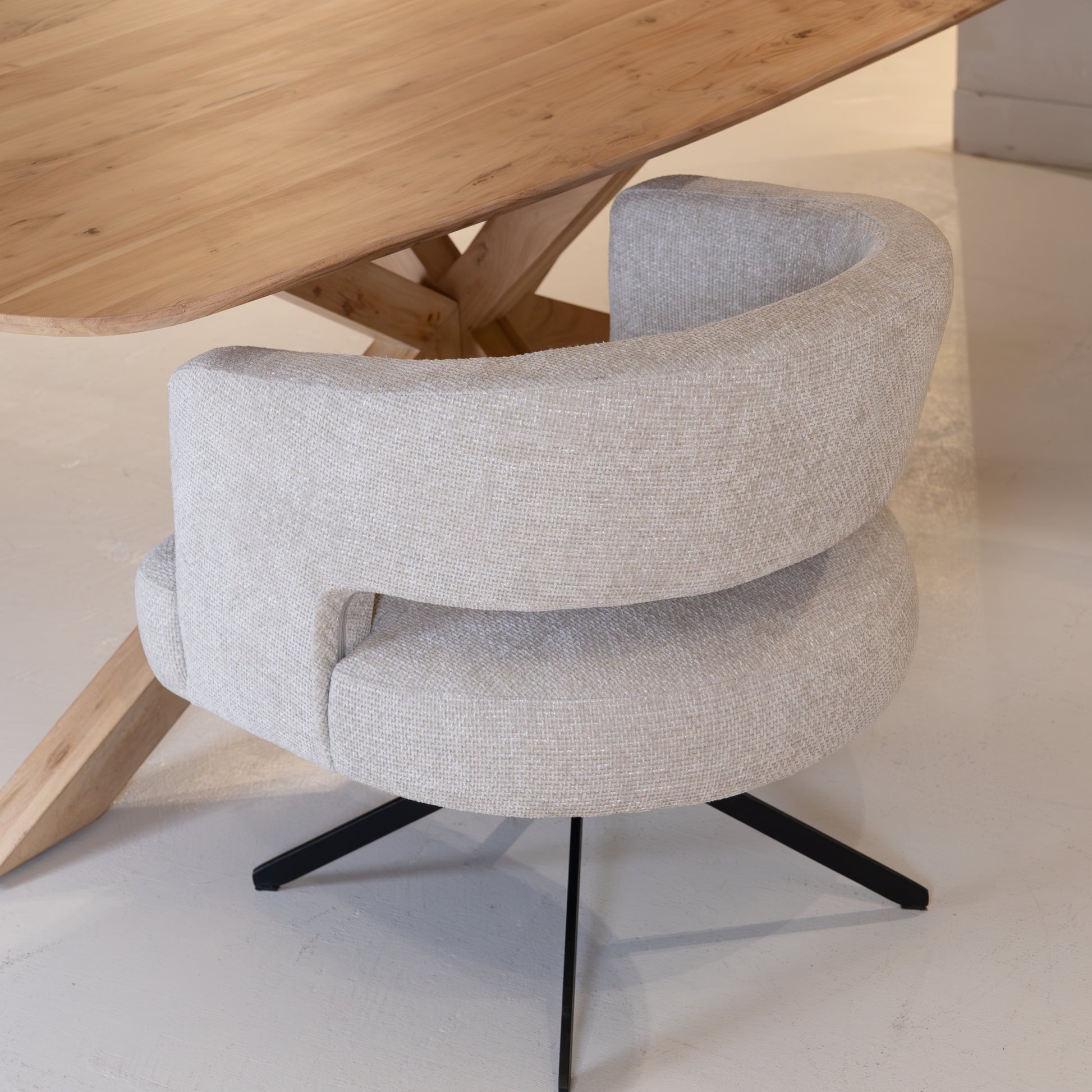 De Baldr eetkamerstoel biedt extra flexibiliteit dankzij zijn draaibare ontwerp, waardoor het gemakkelijk is om je positie aan te passen tijdens diners of gezellige gesprekken aan tafel.