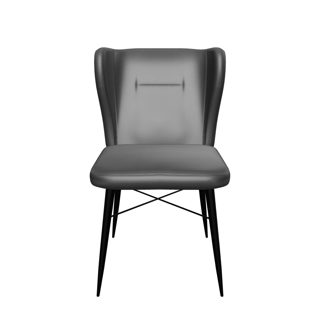 Maak kennis met de Eetkamerstoel Beauty in Antraciet. Zoals de naam al zegt, is dit een echte 'beauty'. De aan de zijkant schuine rugleuning biedt extra comfort en stimuleert bovendien een juiste zithouding. Het zitoppervlak is ruim en zacht. De metalen poten lopen lichtjes naar buiten waardoor de stoel stevig staat.