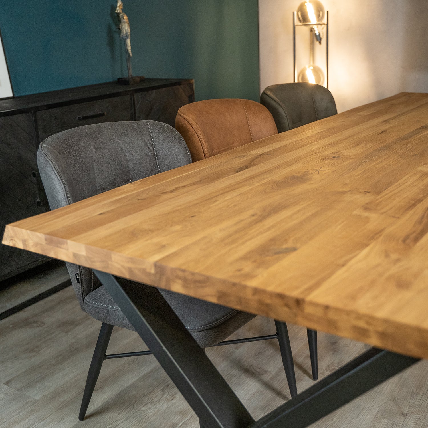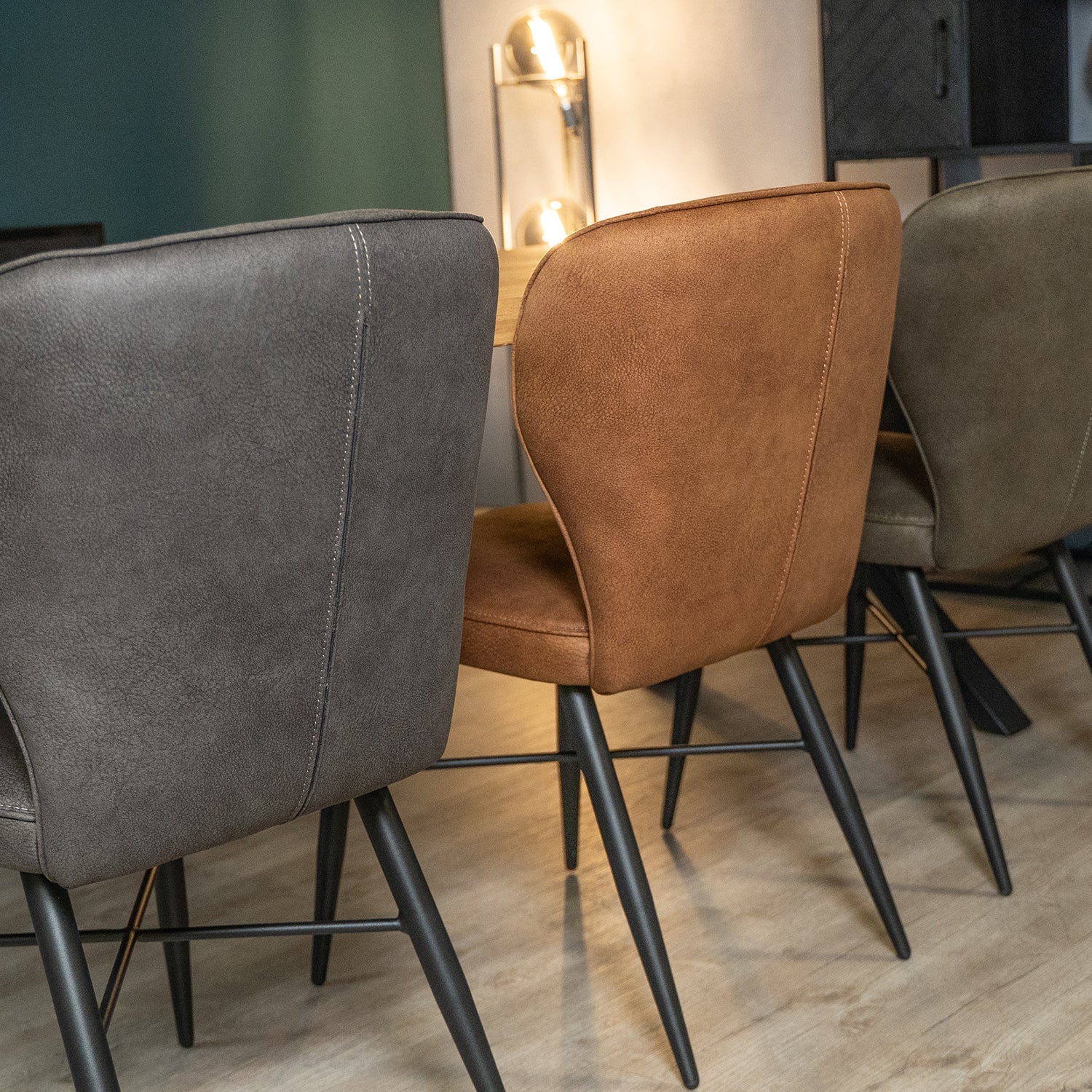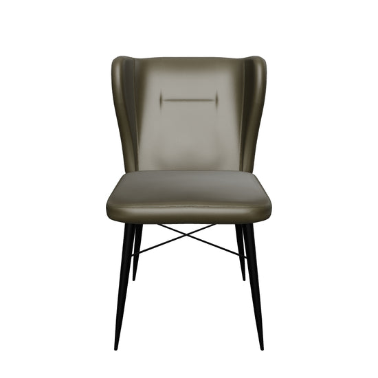 Maak kennis met de Eetkamerstoel Beauty in Army. Zoals de naam al zegt, is dit een echte 'beauty'. De aan de zijkant schuine rugleuning biedt extra comfort en stimuleert bovendien een juiste zithouding. Het zitoppervlak is ruim en zacht. De metalen poten lopen lichtjes naar buiten waardoor de stoel stevig staat.