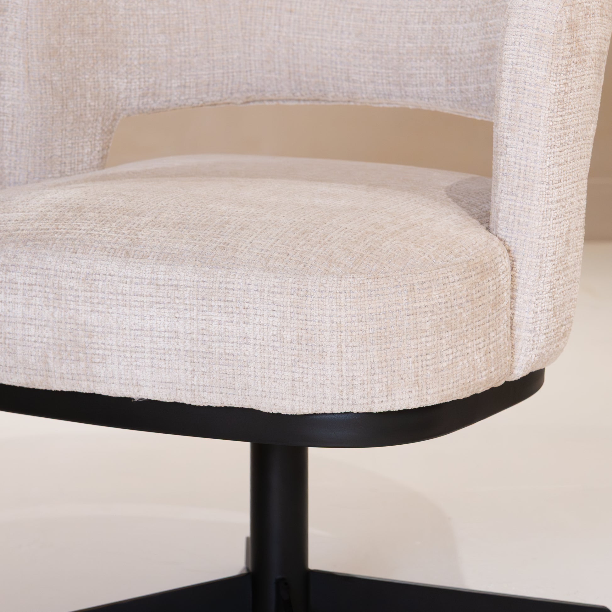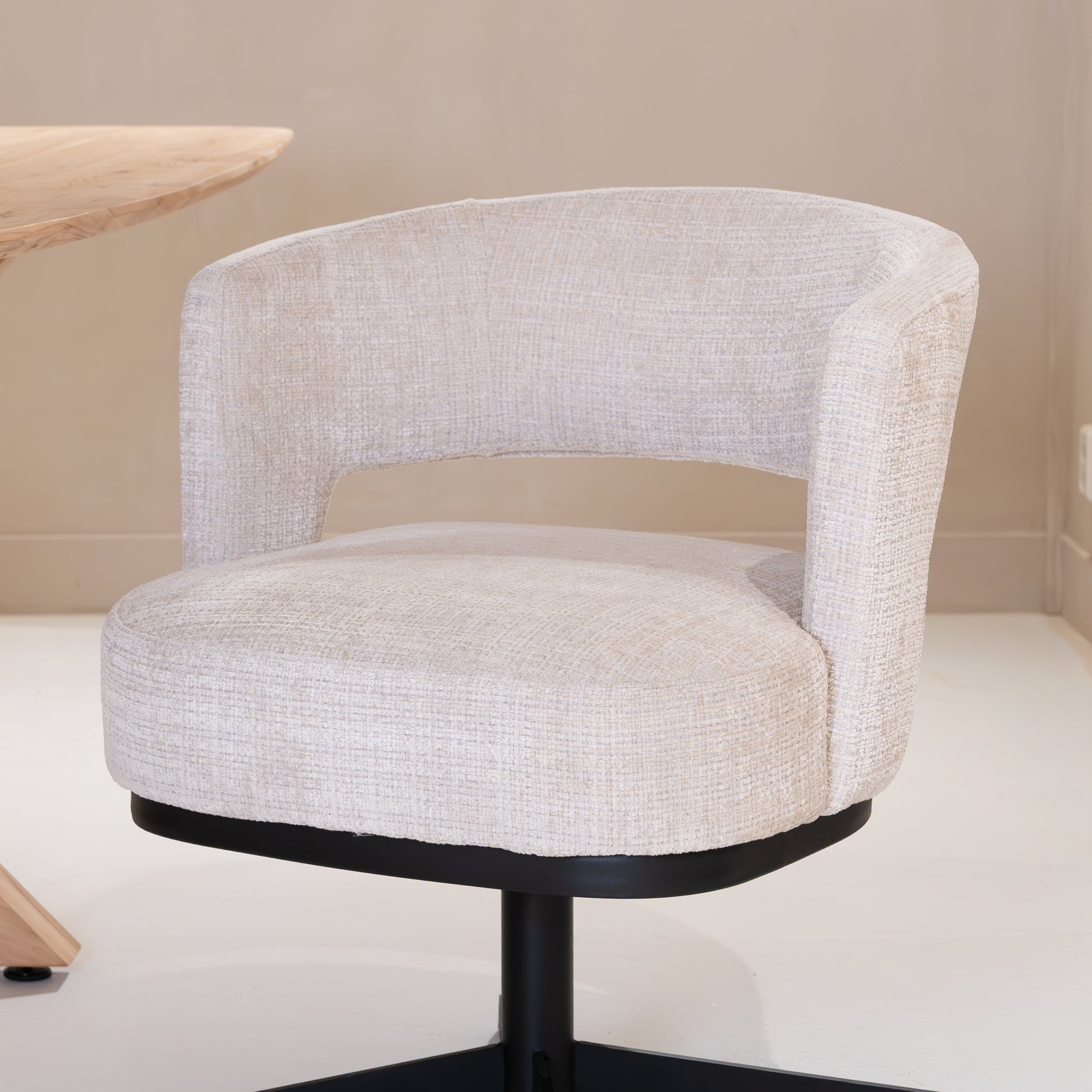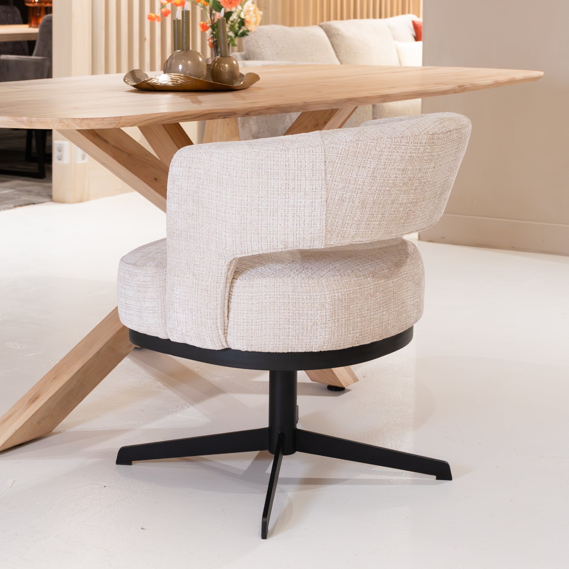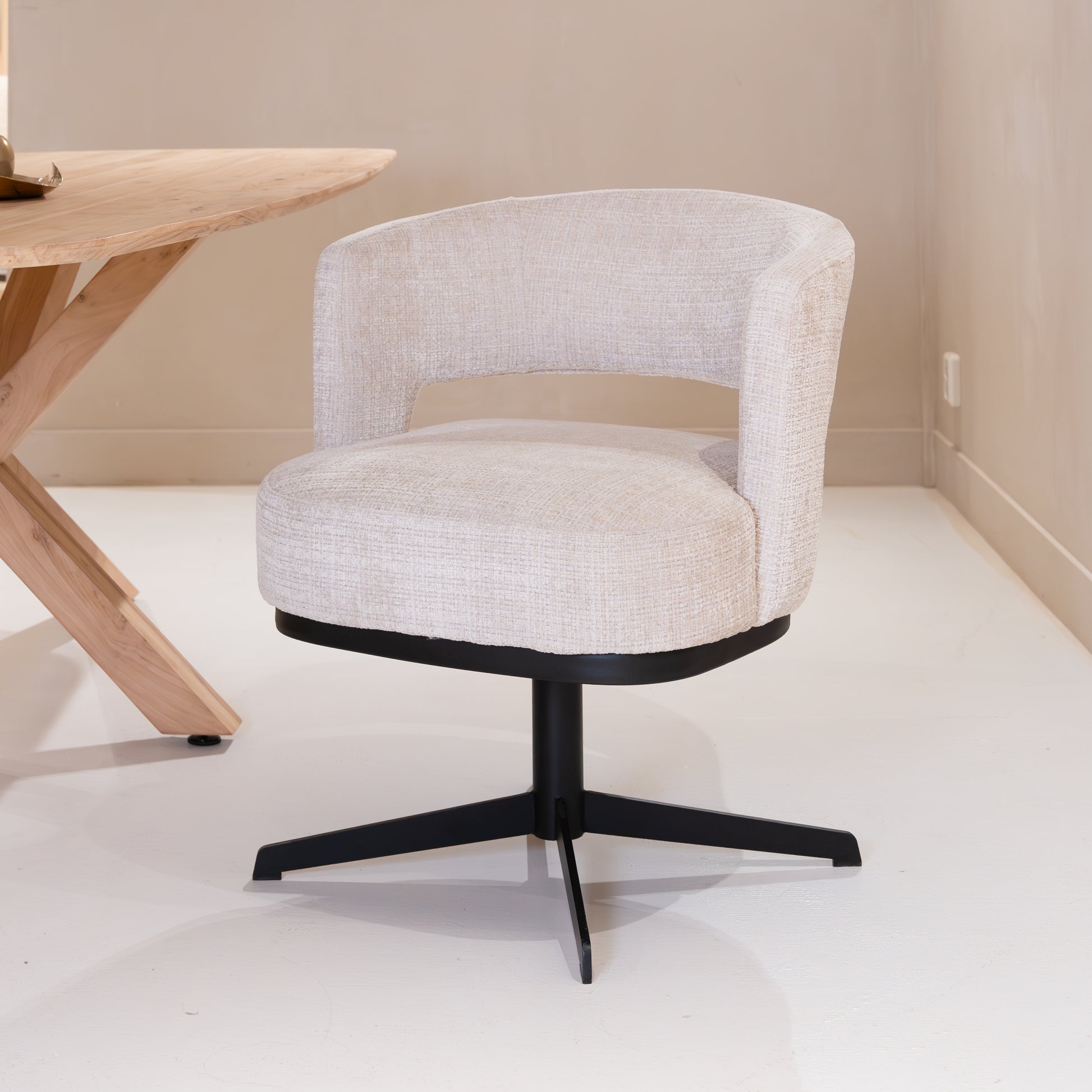 Dankzij het gebruik van hoogwaardige materialen en de 360-graden draaifunctie, biedt de Bruce eetkamerstoel een unieke zitervaring. Deze stoel past perfect in zowel moderne als industriële interieurs en is een eyecatcher aan elke eettafel. De kleur Cermona Naturel voegt een verfijnde, warme toets toe die goed te combineren is met andere neutrale of natuurlijke tinten in je interieur. Kortom, de eetkamerstoel Bruce biedt een mix van stijl, comfort en functionaliteit voor de moderne woning.