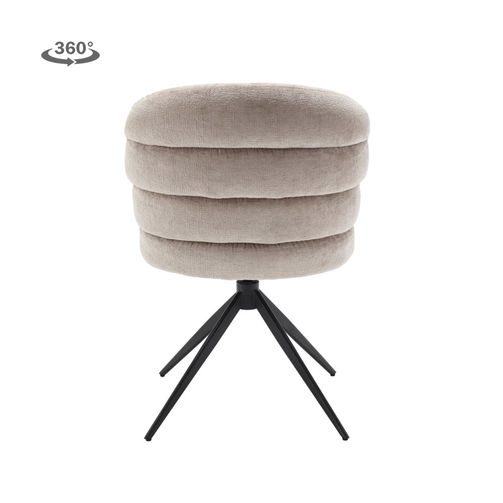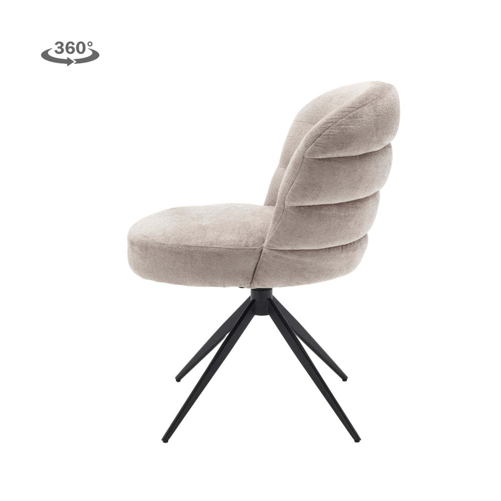 De Eetkamerstoel Carro | Grijs Stof van Tower Living is de perfecte combinatie van elegantie, comfort en functionaliteit. Deze stoel is bekleed met een zachte Grijze stof, die zorgt voor een frisse, tijdloze uitstraling. De zitting is ergonomisch gevormd en voorzien van armleuningen voor extra ondersteuning. Het zwarte 360° draaibare onderstel maakt de stoel praktisch in gebruik, zonder dat je hoeft te schuiven – ideaal voor dynamisch tafelen.