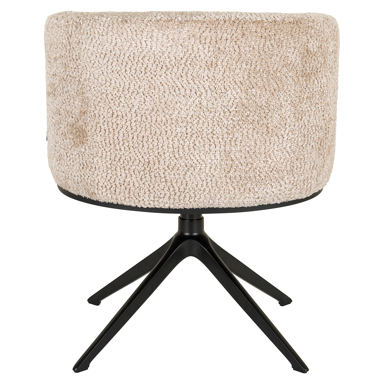 Onderstel: Zwart metalen draaivoet – 360° rotatie zonder te schuiven